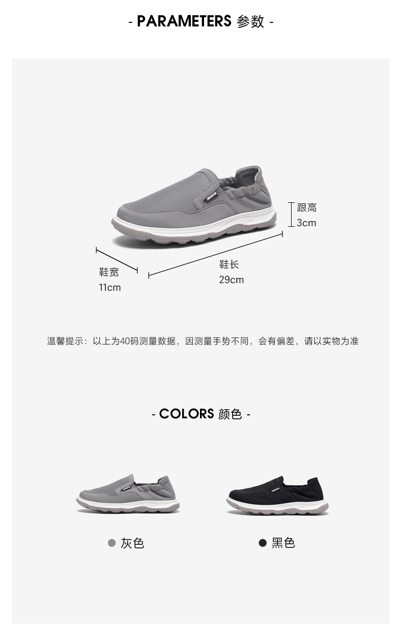 | 40码鞋长参考(男):29CM | 鞋帮:低帮 | 鞋头款式:圆头 | 鞋底材质:发泡底 | 鞋面图案:纯色 |