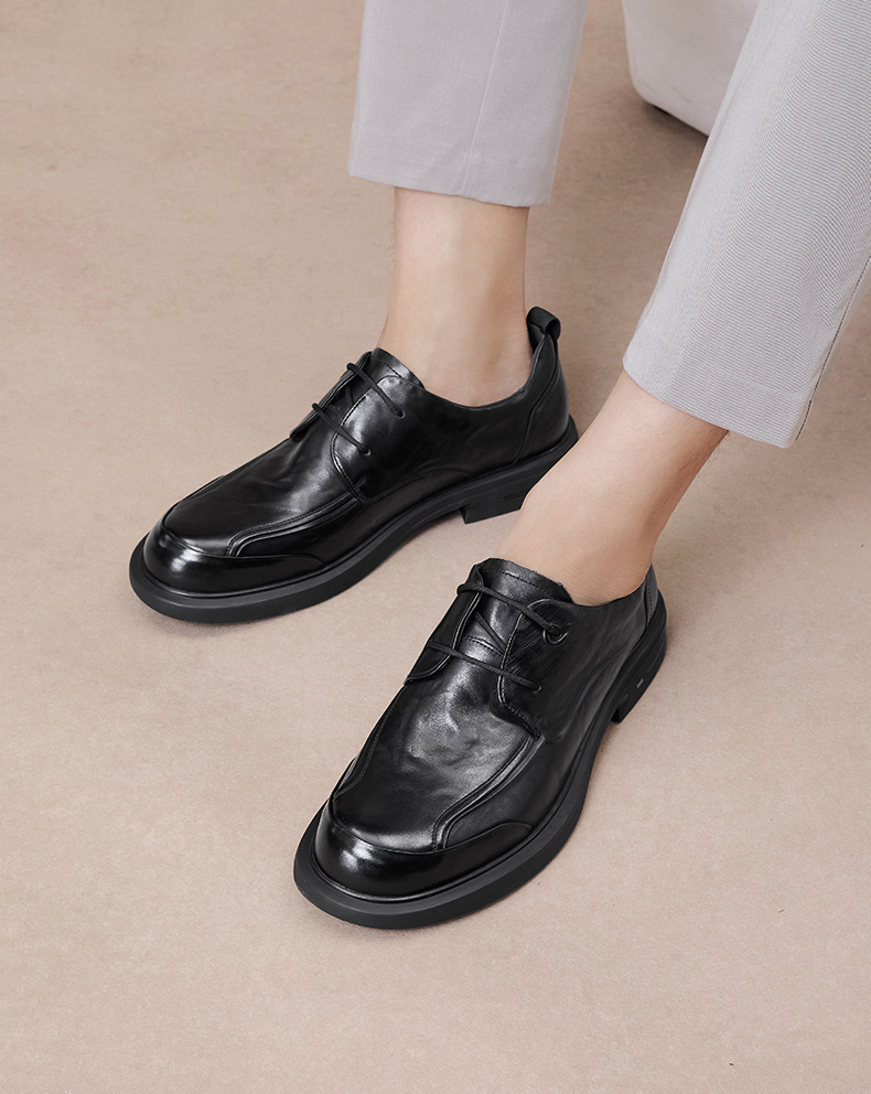 | 内增高:无 | 鞋跟形状:粗跟 | 鞋面材质:牛皮革 | 流行元素:纯色 | 闭合方式:系带 |