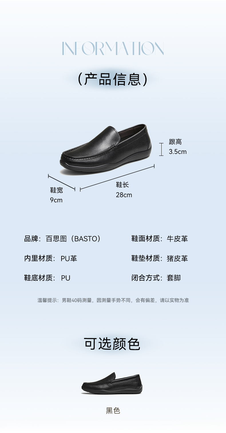 | 风格:商务 | 色系:黑色 | 跟高数值:3.5CM | 40码鞋宽参考(男):9CM | 性别:男子 |