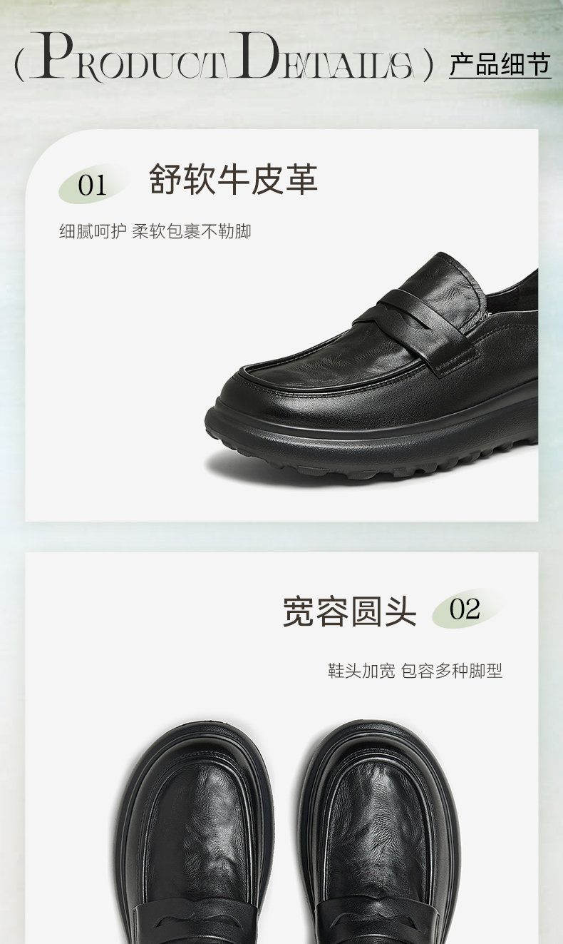 | 鞋面材质:牛皮革 | 适用场合:正装 | 闭合方式:套脚 | 所在区域:电子商务 | 40码鞋宽参考(男):11CM |