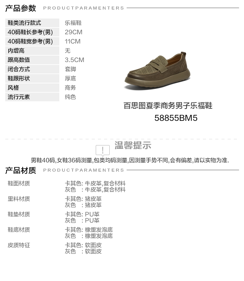 | 风格:商务 | 色系:灰色 | 跟高数值:3.5CM | 40码鞋宽参考(男):11CM | 性别:男子 |