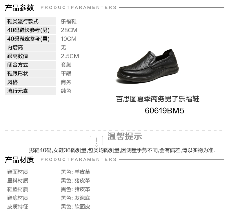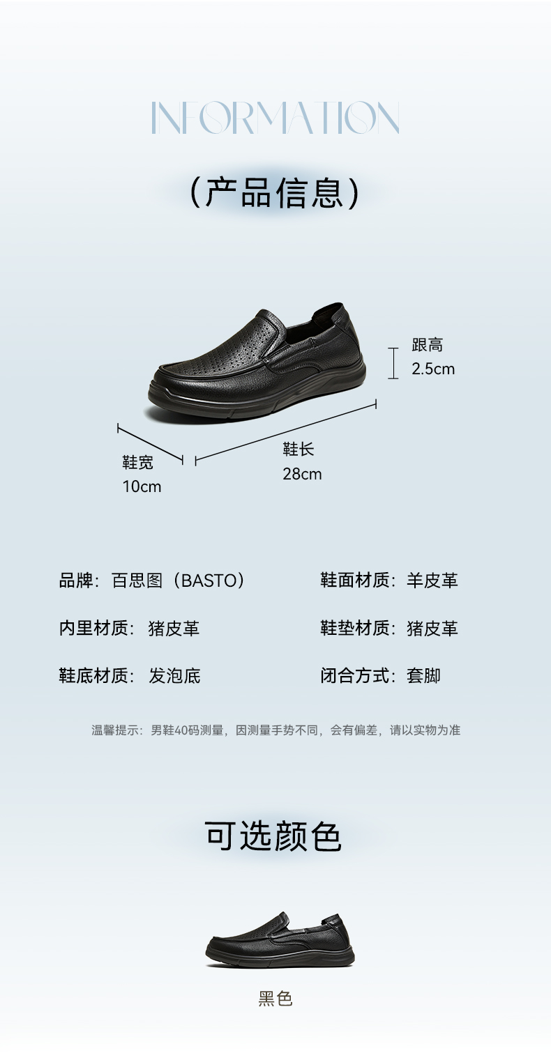 | 风格:商务 | 色系:黑色 | 跟高数值:2.5CM | 40码鞋宽参考(男):10CM | 性别:男子 |