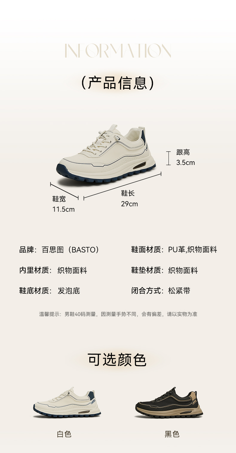 | 鞋面材质:织物面料PU革 | 适用场合:运动休闲 | 闭合方式:松紧带 | 所在区域:电子商务 | 40码鞋宽参考(男):11.5CM |