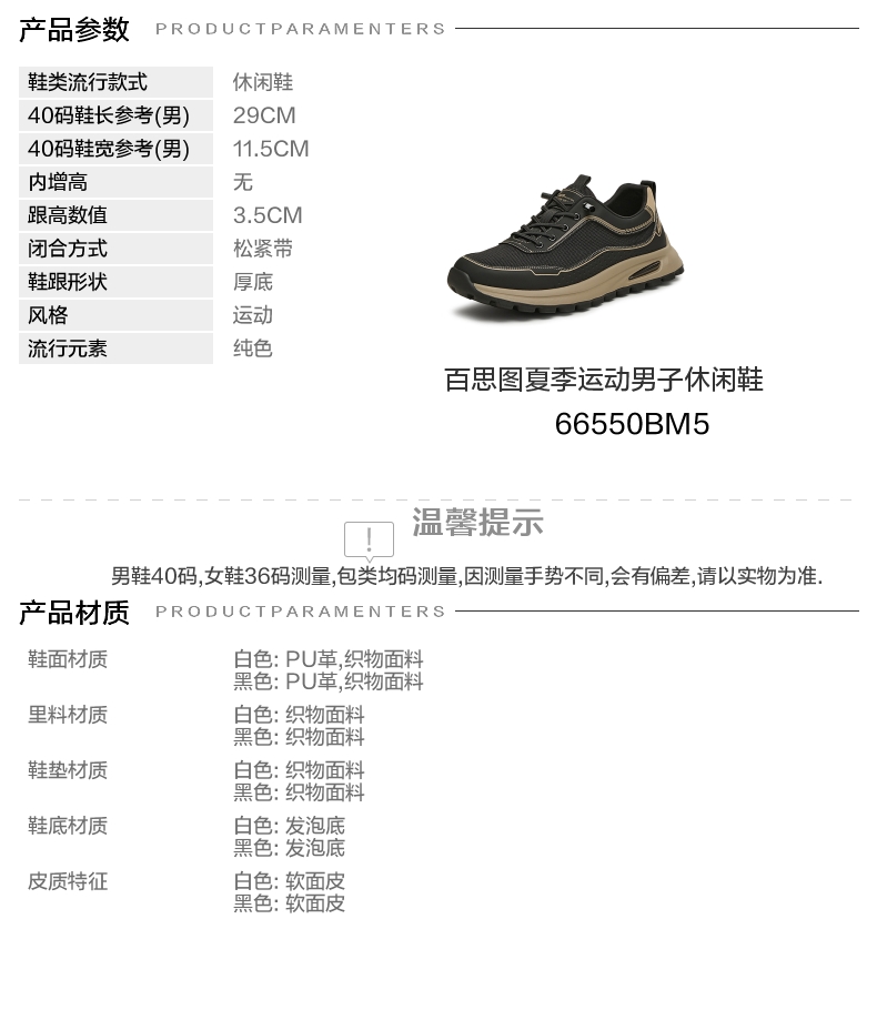 | 40码鞋长参考(男):29CM | 鞋帮:低帮 | 功能科技:耐磨 | 鞋底材质:发泡底 | 内增高:无 |