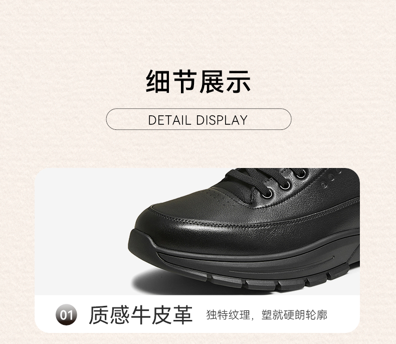 | 内增高:无 | 鞋跟形状:厚底 | 鞋面材质:牛皮革 | 流行元素:纯色 | 闭合方式:松紧带 |