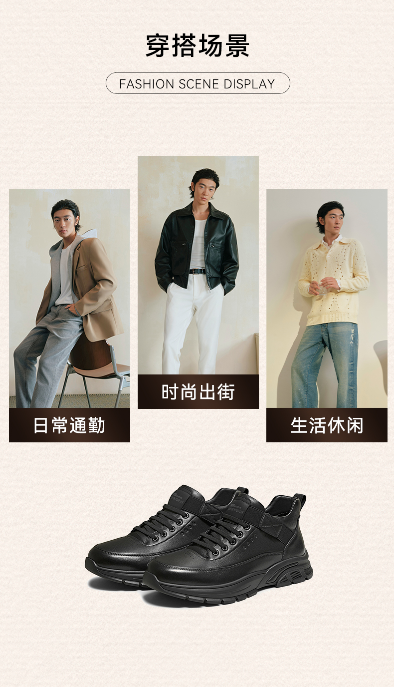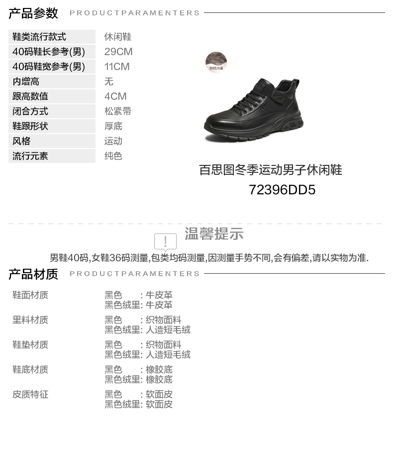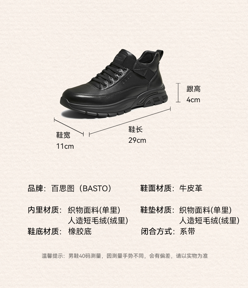 | 风格:运动 | 色系:黑色 | 跟高数值:4CM | 40码鞋宽参考(男):11CM | 筒高数值:12CM |