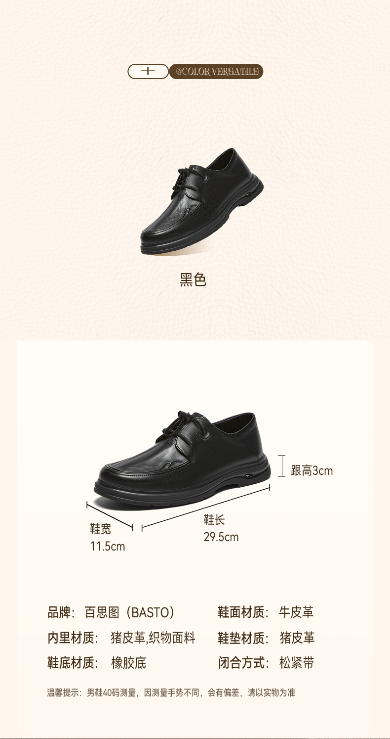 | 风格:商务 | 色系:黑色 | 跟高数值:3CM | 40码鞋宽参考(男):11.5CM | 性别:男子 |