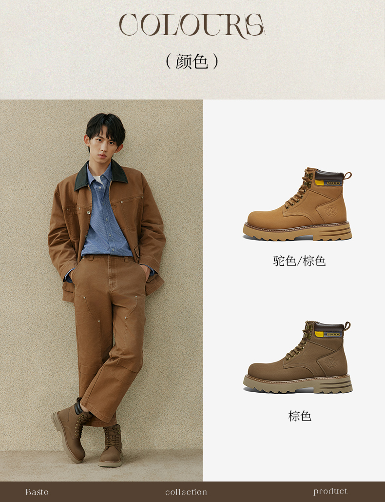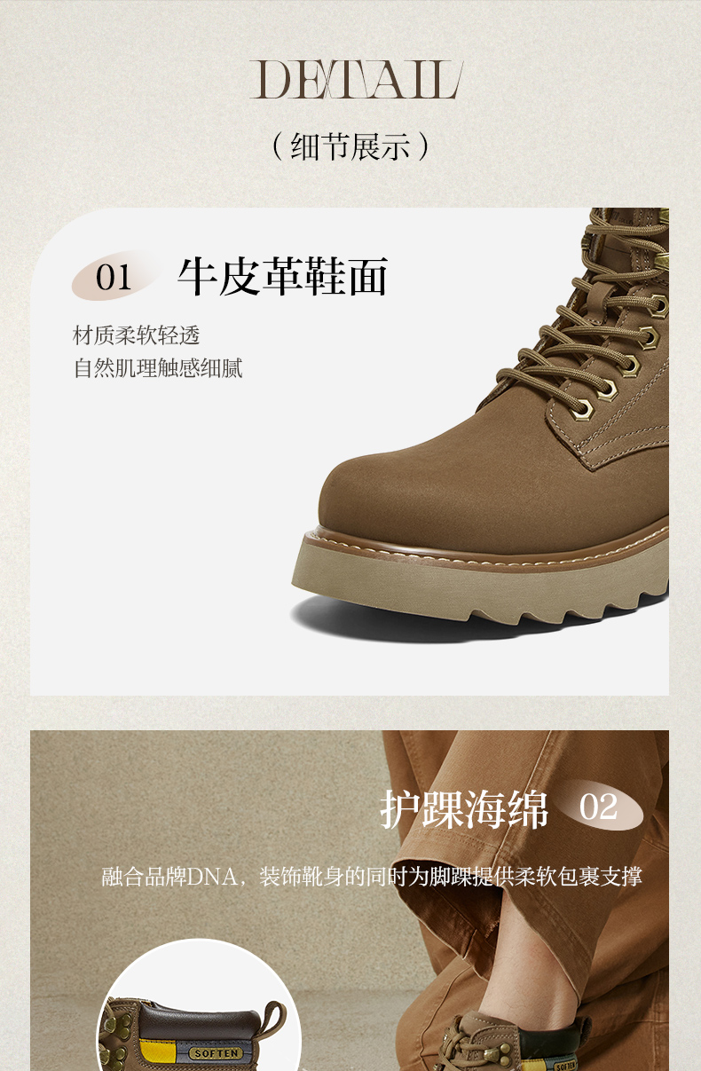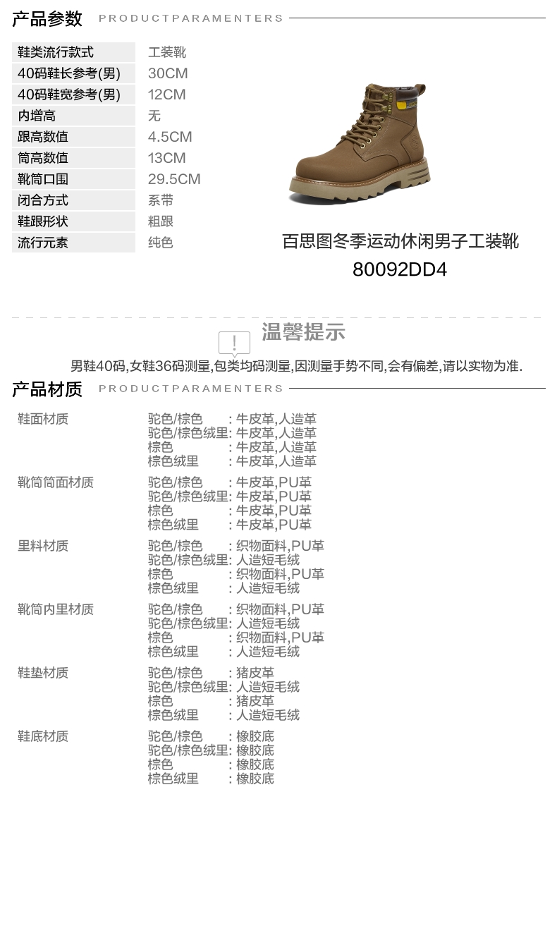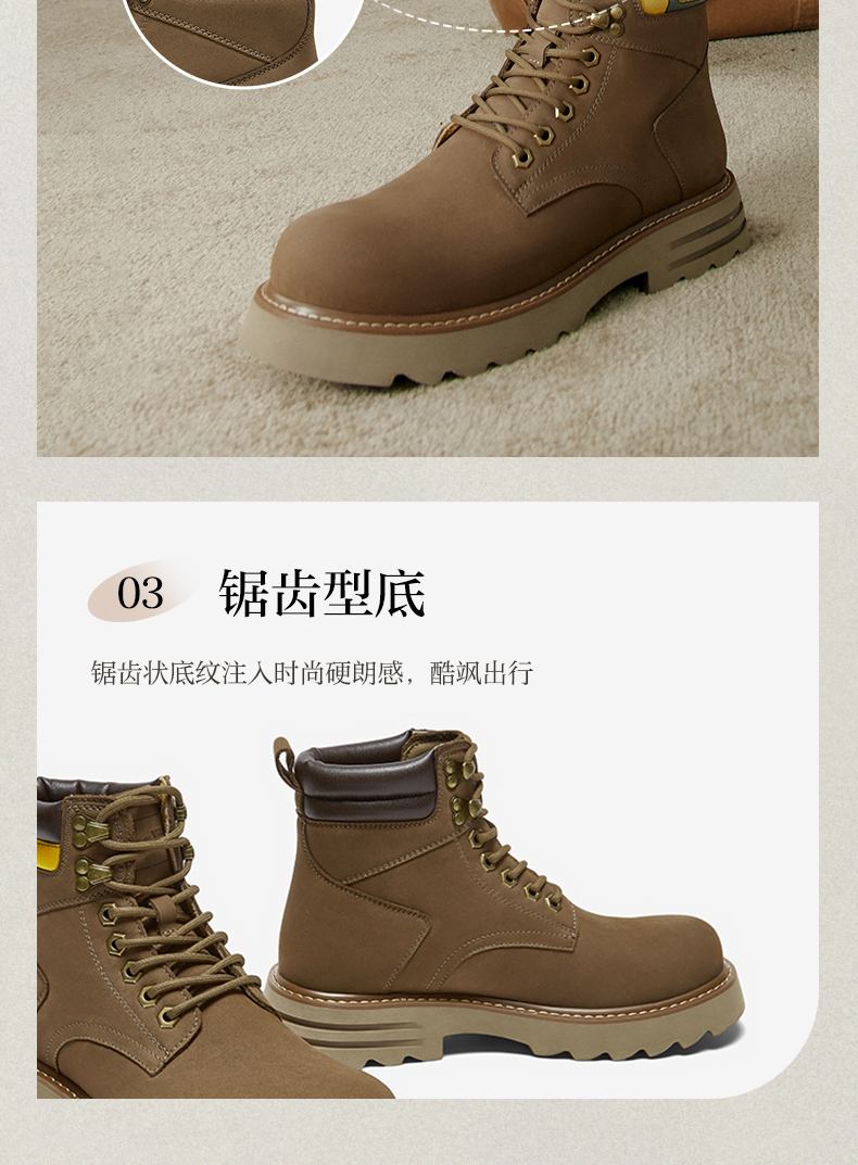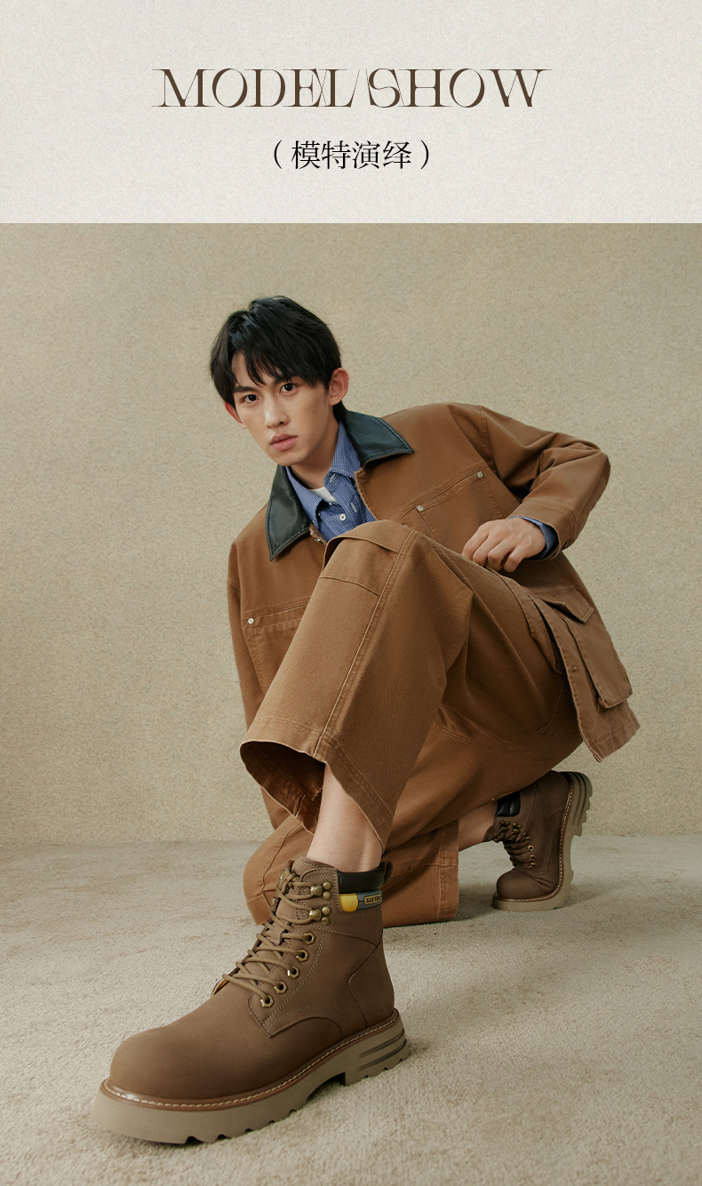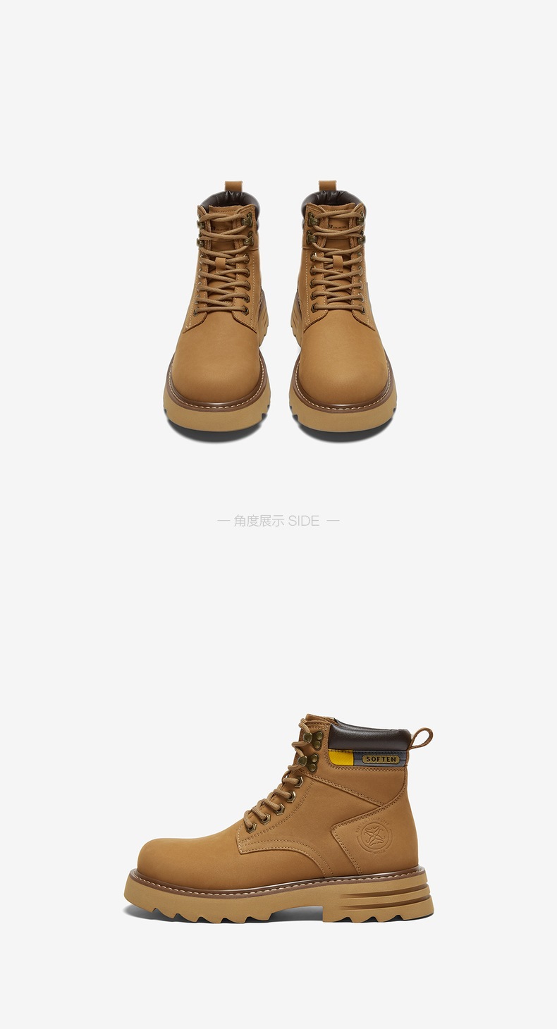 | 鞋类流行款式:工装靴 | 鞋头款式:圆头 | 执行标准:皮鞋QB/T1002-2015 | 鞋面图案:纯色 | 鞋跟形状:粗跟 |