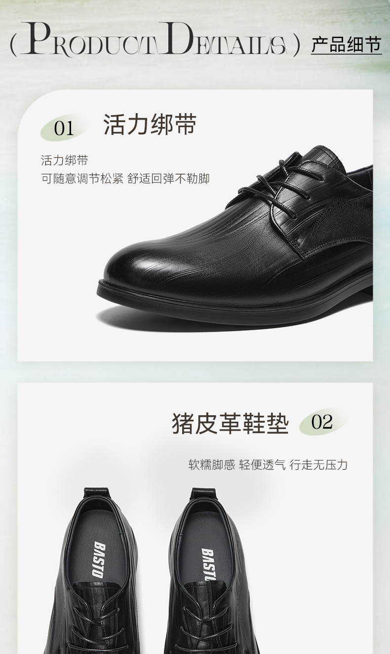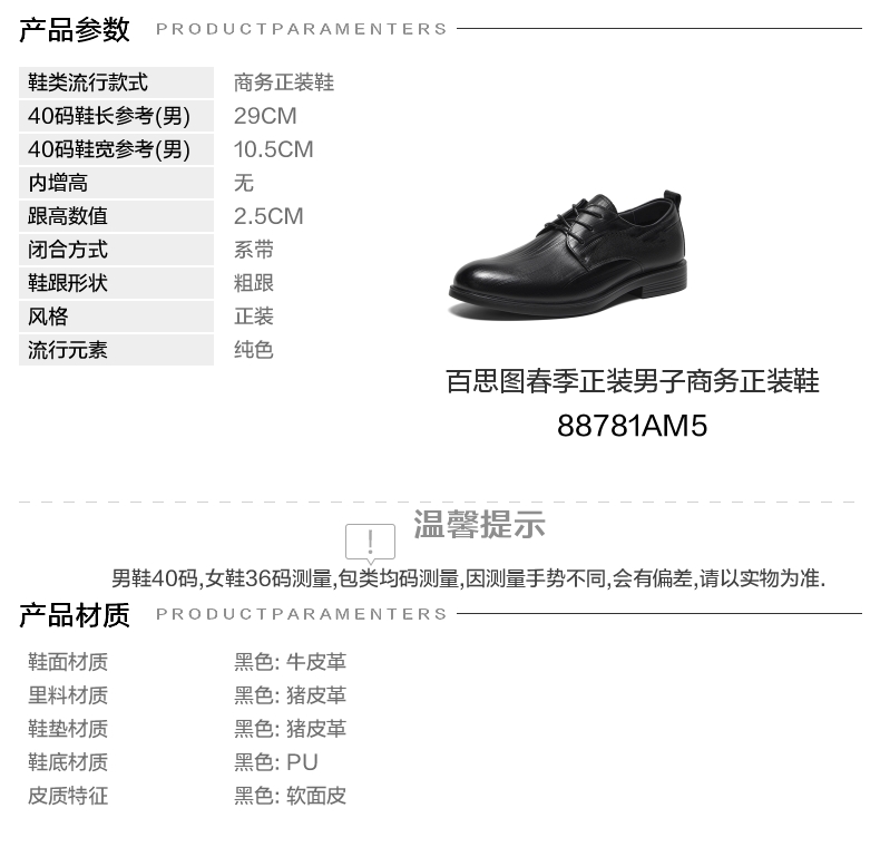 | 鞋面材质:牛皮革 | 适用场合:正装 | 闭合方式:系带 | 所在区域:电子商务 | 40码鞋宽参考(男):10.5CM |