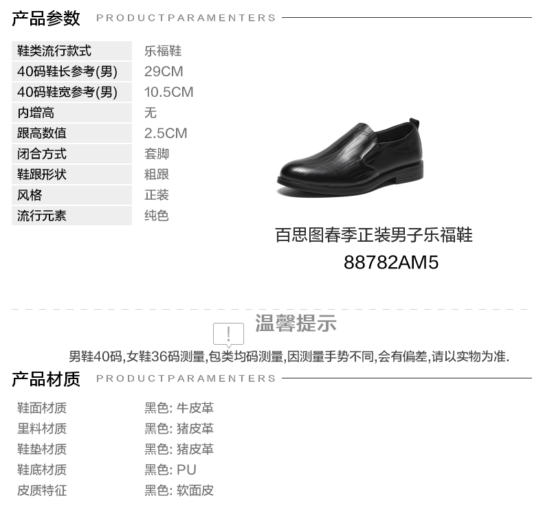 • 百思图2025春季新款商场同款简便通勤乐福鞋男休闲皮鞋88782AM5