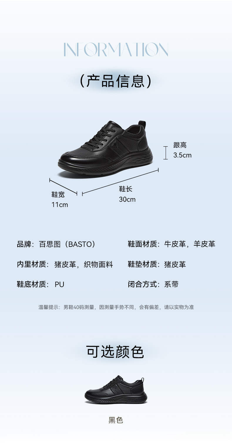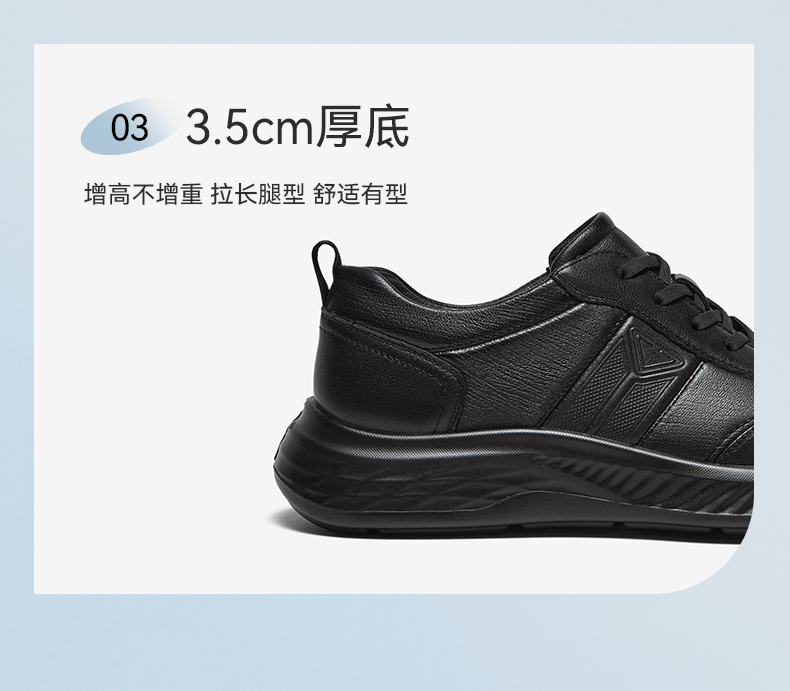 | 风格:运动 | 色系:黑色 | 跟高数值:3.5CM | 40码鞋宽参考(男):11CM | 性别:男子 |