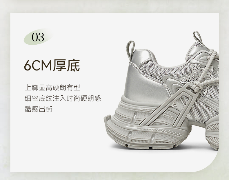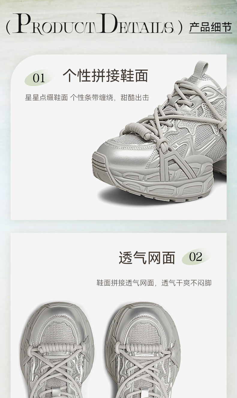 | 风格分类:老爹鞋 | 上市时间:2025年春季 | 生产/经销/进口厂家:丽荣鞋业(深圳)有限公司 | 鞋类流行款式:老爹鞋 | 鞋头款式:圆头 |