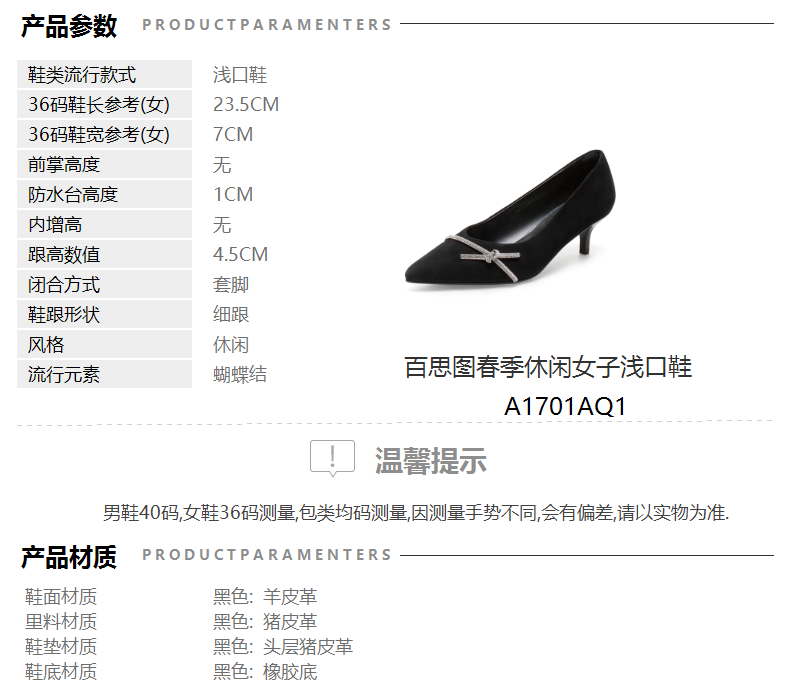 | 风格:休闲 | 跟高数值:4.5CM | 色系:黑色 | 货品来源:外购 | 配跟:无 |