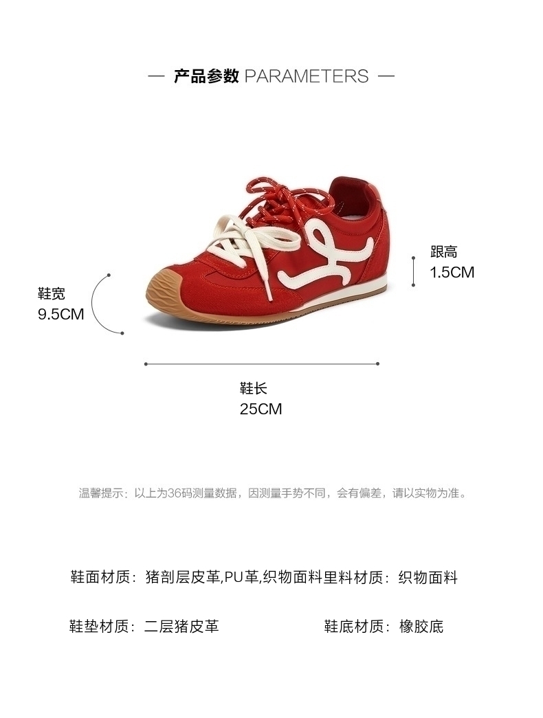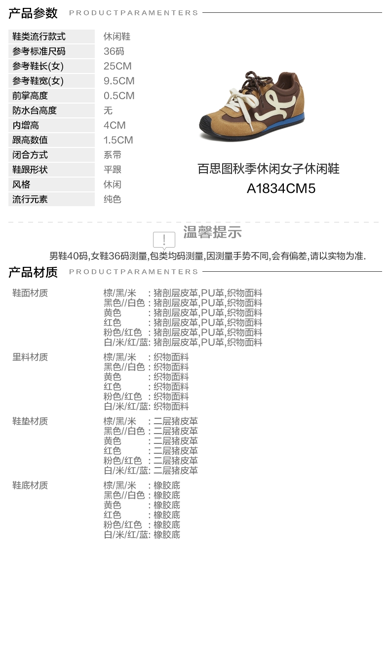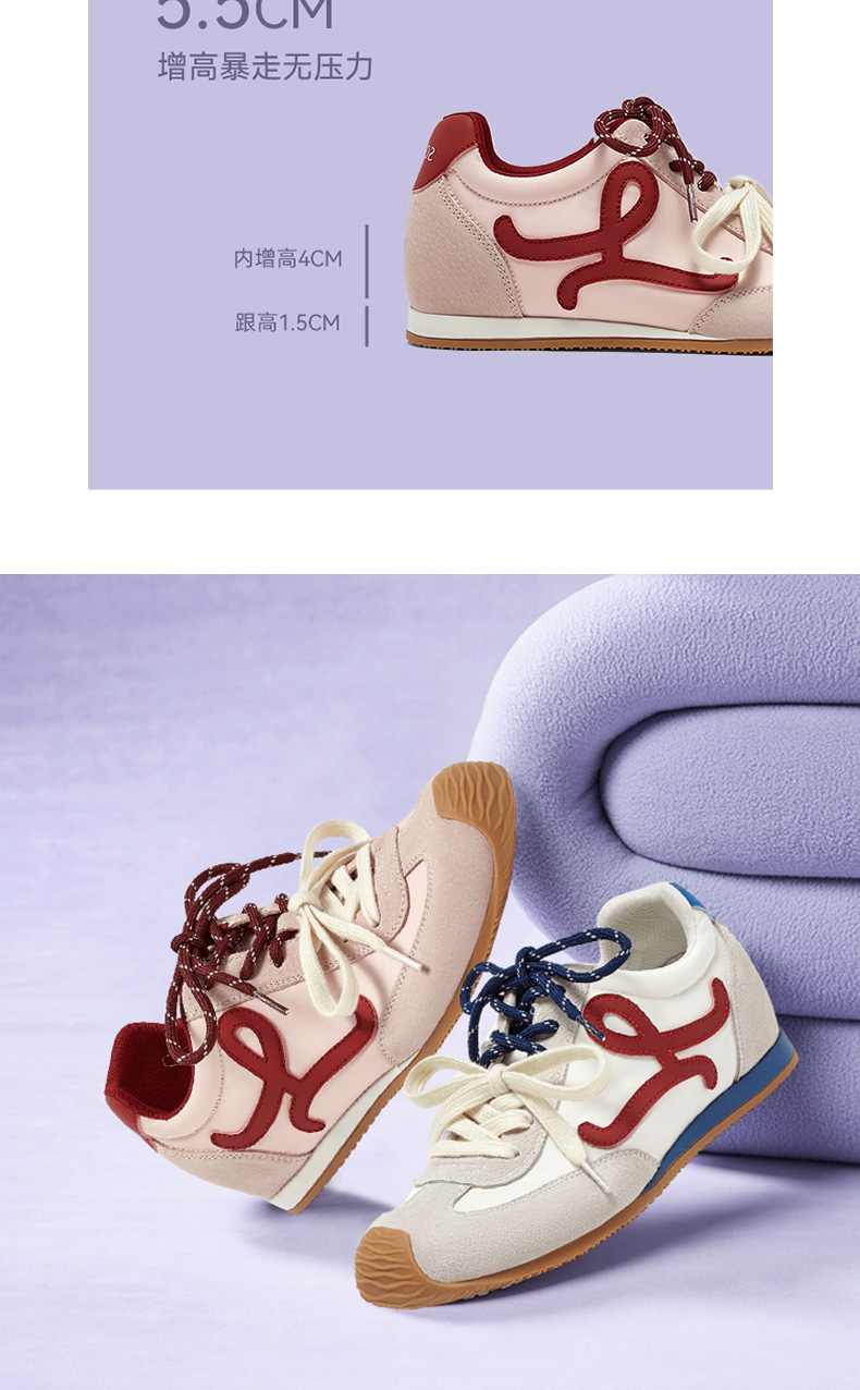 | 鞋帮:低帮 | 鞋底材质:橡胶底 | 内增高:4CM | 鞋面材质:猪剖层皮革织物面料PU革 | 闭合方式:系带 |