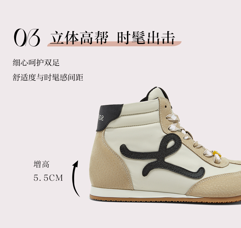| 鞋底材质:橡胶底 | 靴筒内里材质:织物面料 | 内增高:4CM | 鞋面材质:织物面料PU革猪剖层皮革 | 闭合方式:系带 |
