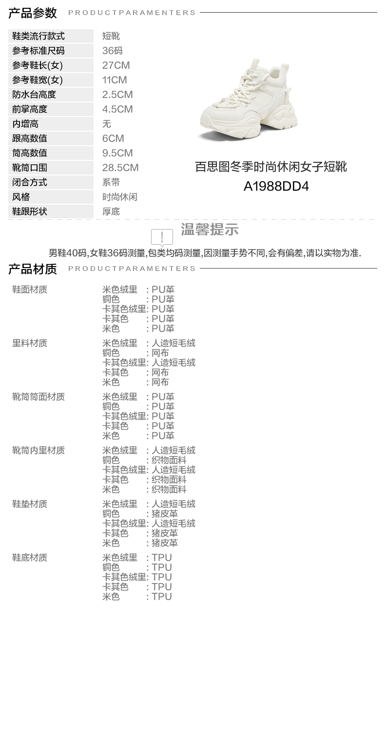 | 款式季节:冬季 | 前掌高度:4.5CM | 皮质特征:PU | 防水台高度:2.5CM |