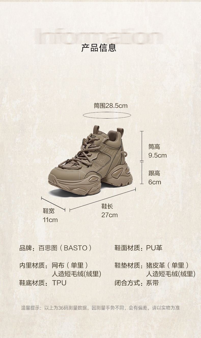 | 参考鞋宽(女):11CM | 风格:时尚休闲 | 色系:卡其 | 跟高数值:6CM | 筒高数值:9.5CM |