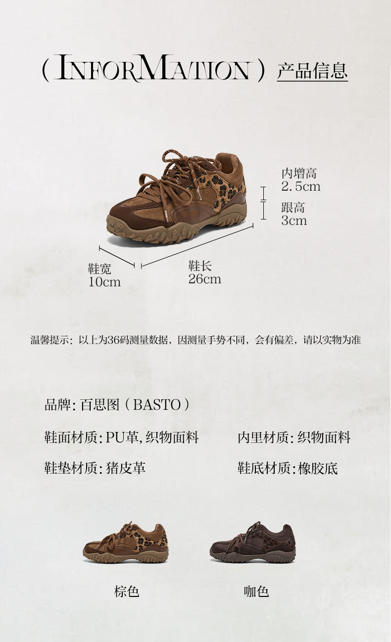 | 鞋面内里材质:织物 | 色系:棕色 | 跟高数值:3CM | 适用人群:女子 | 性别:女子 |