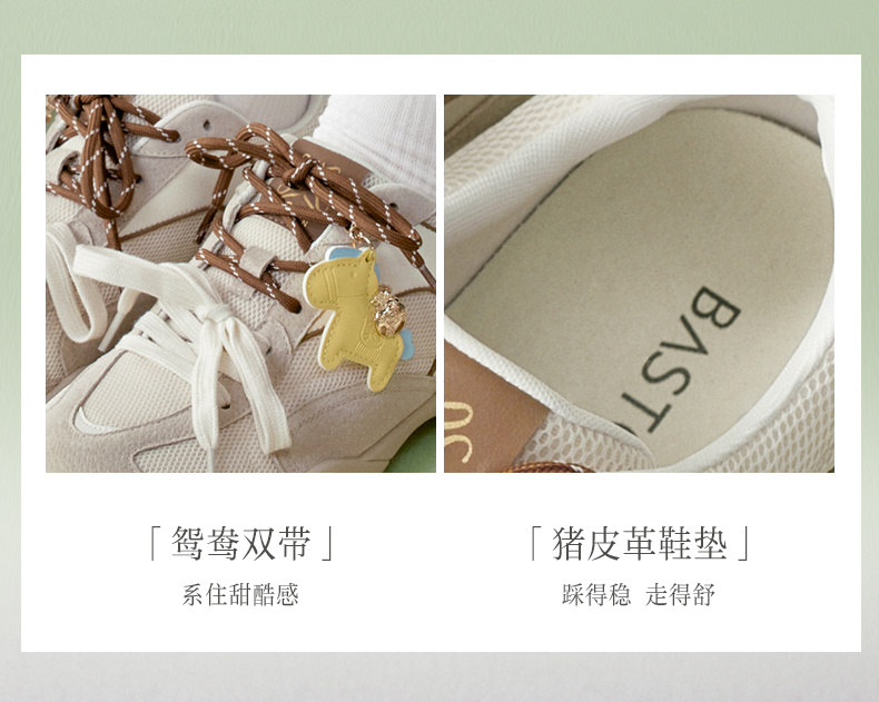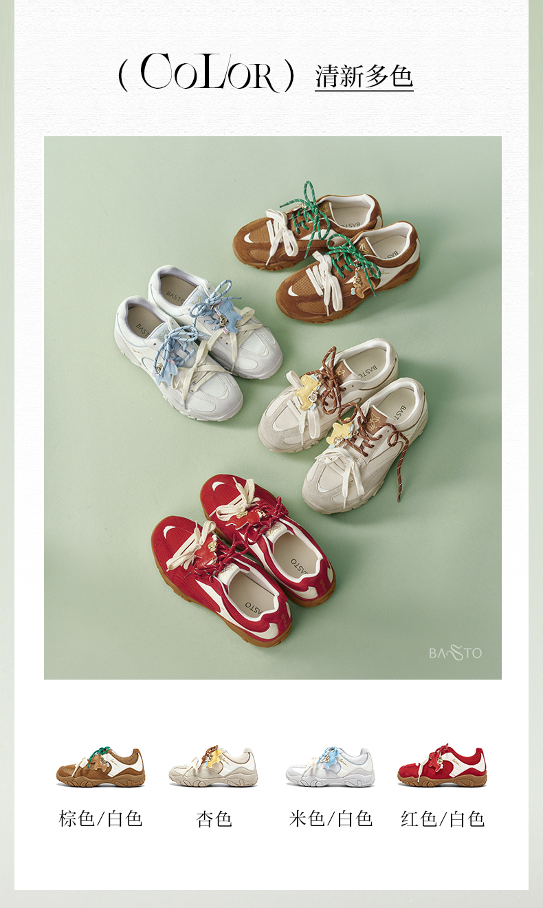 BASTO(百思图),品牌拥有17年历史,秉承优雅、甜美、清新的设计理念,主张“好嫁风”的产品风格,将甜美俏丽的少女情怀融合优雅气质的时尚品味,塑造出唯美优雅、受欢迎的女鞋款式。主打以女性温柔与亲和力为特色的流行时尚产品,糅合雅致又富有亲和力的裸粉色调,淑媛端庄、清新甜美。目前品牌已开设线下门店达1400多家。
