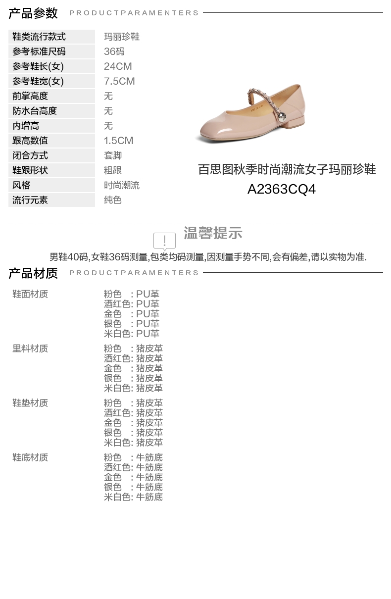| 款式季节:秋季秋季 | 鞋垫材质:猪皮革猪皮革 | 渠道划分:线下同步线下同步 | 前掌高度:无无 | 皮质特征:PUPU |