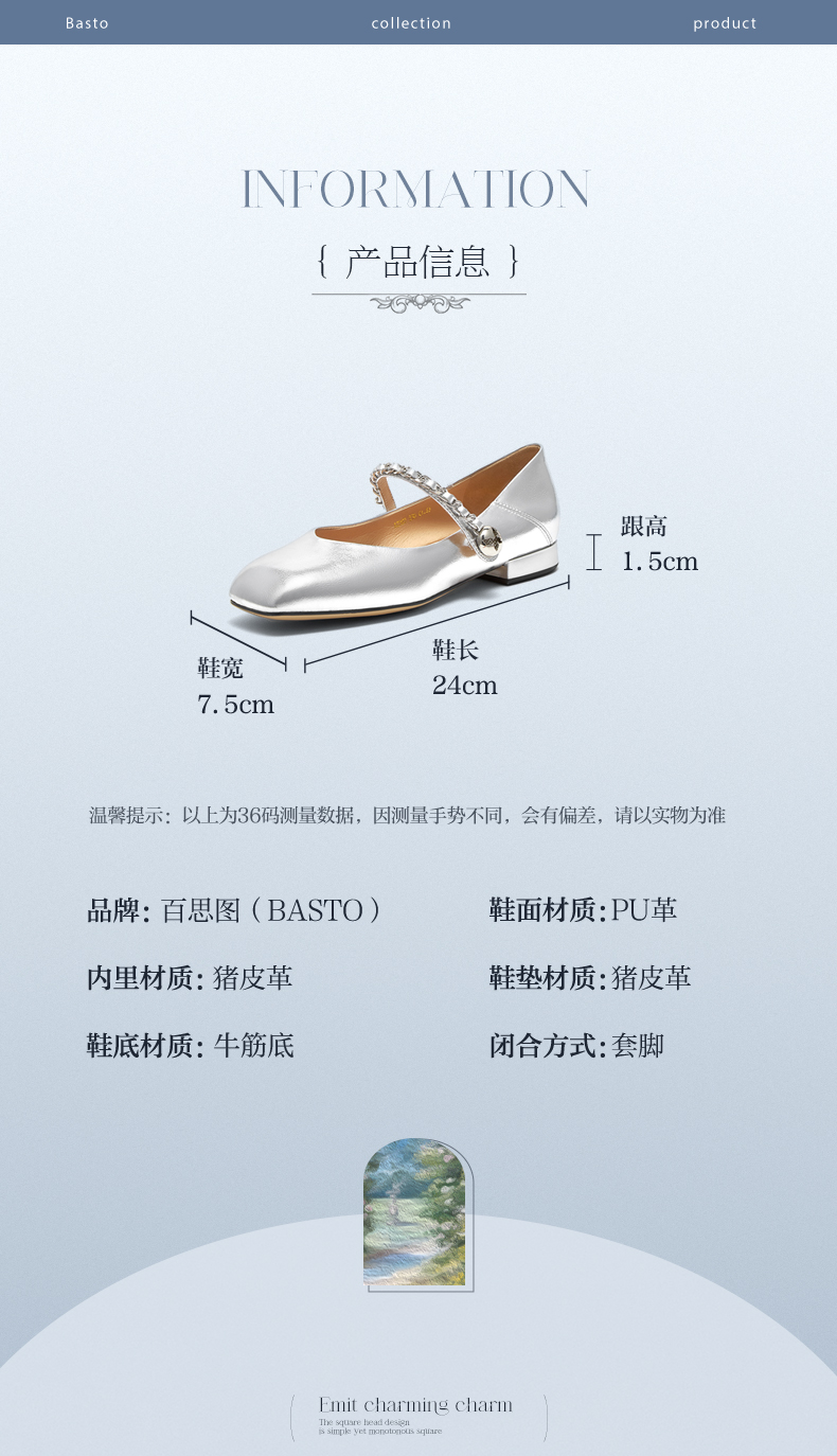 | 闭合方式:套脚套脚 | 所在区域:电子商务电子商务 | 配跟:无无 | 开口深度:浅口浅口 | 风格分类:玛丽珍鞋玛丽珍鞋 |