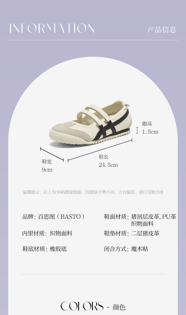 | 鞋面材质:织物面料猪剖层皮革 | 流行元素:纯色 | 参考鞋长(女):24.5CM | 参考鞋宽(女):9CM | 闭合方式:魔术贴 |