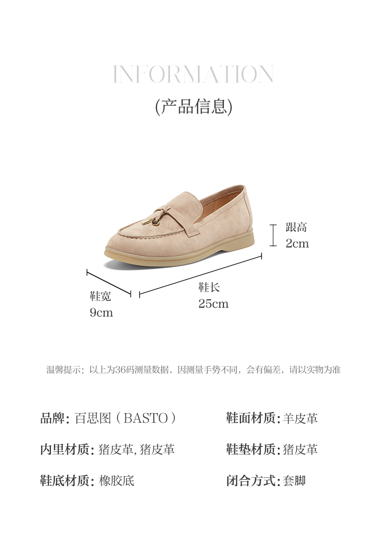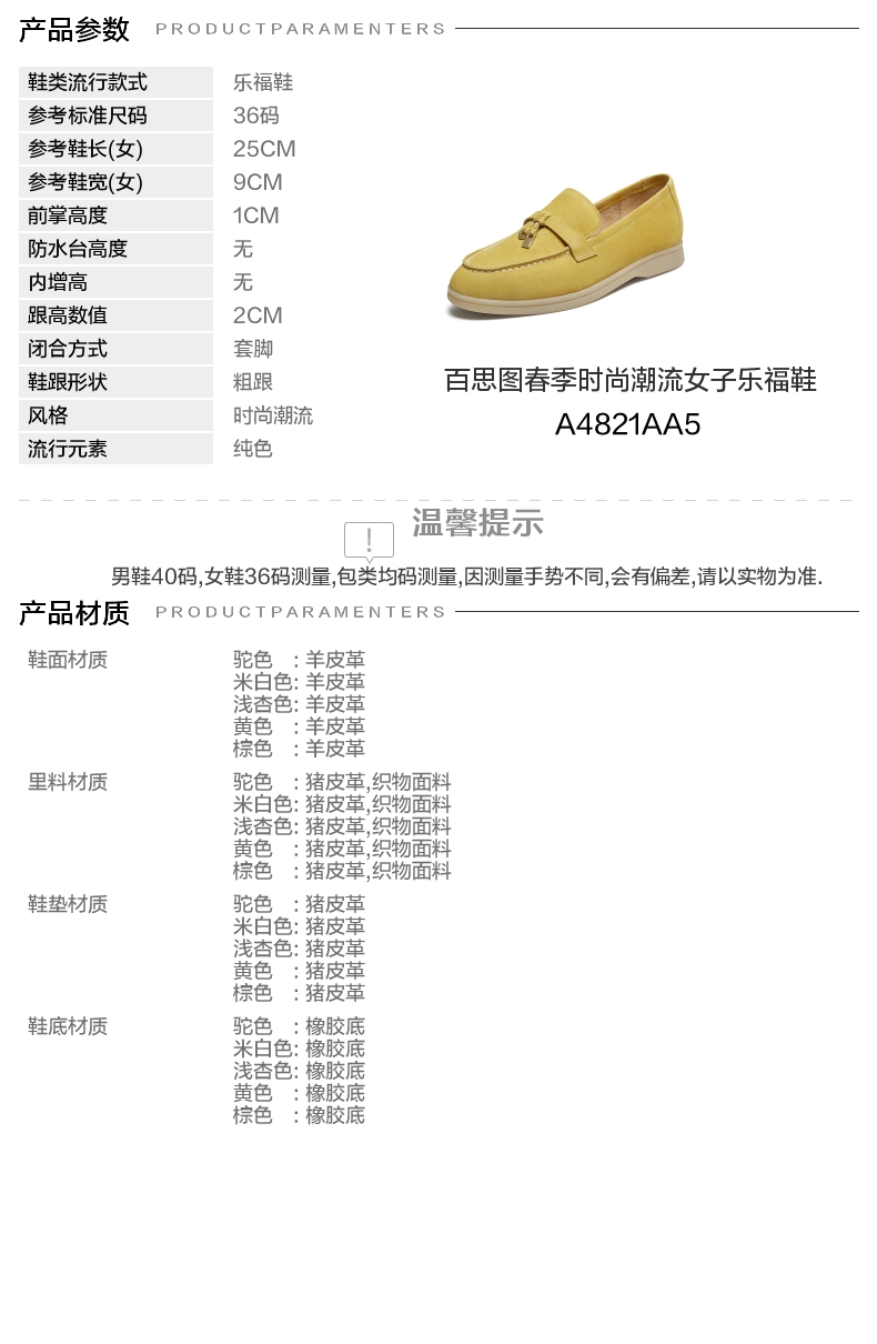 | 配跟:无 | 上市时间:2025年春季 | 鞋类流行款式:乐福鞋 | 鞋头款式:圆头 | 鞋面图案:纯色 |