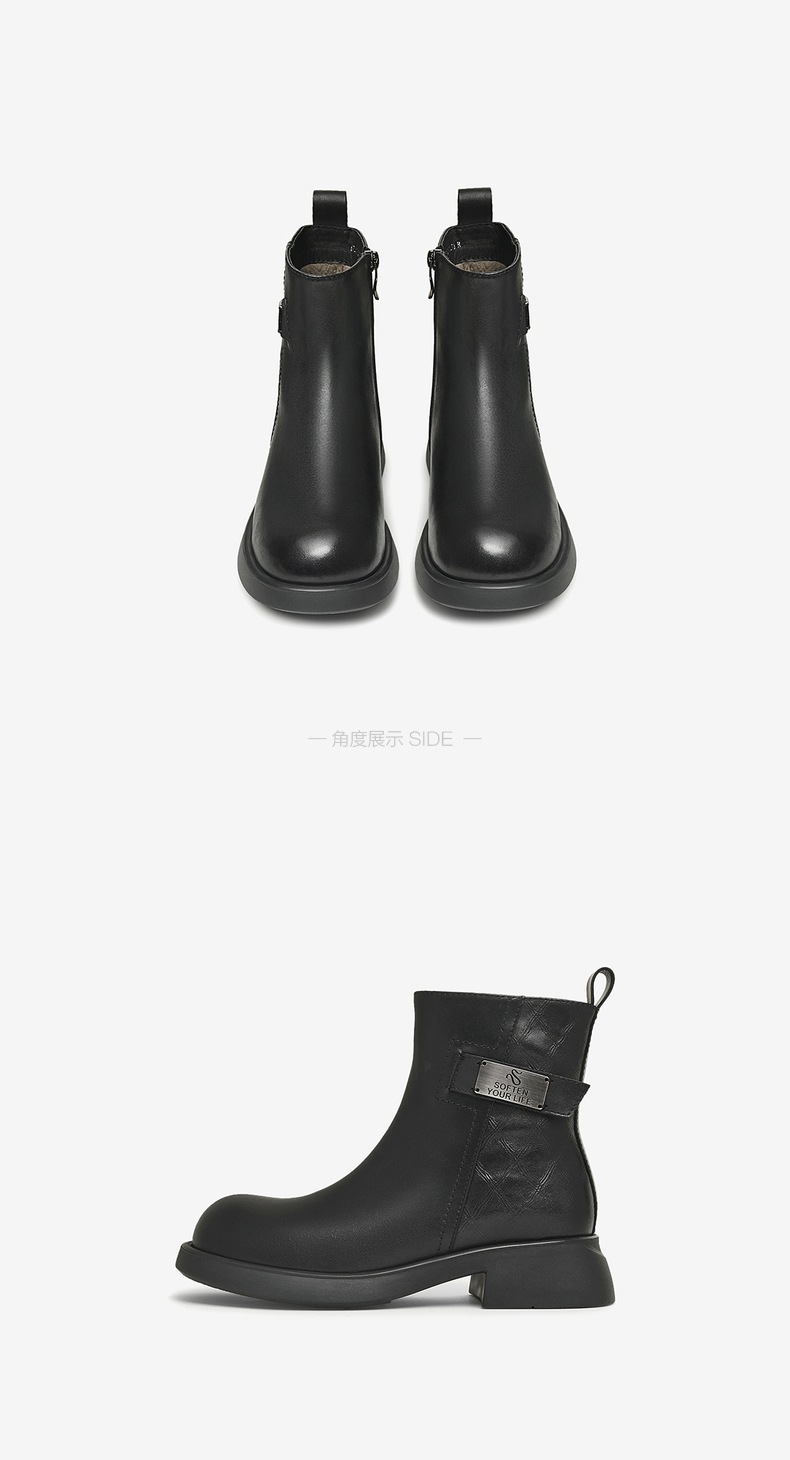 | 帮面材质:牛皮革 | 配跟:无 | 靴筒口围:29CM | 上市时间:2024年冬季 | 鞋类流行款式:短靴 |