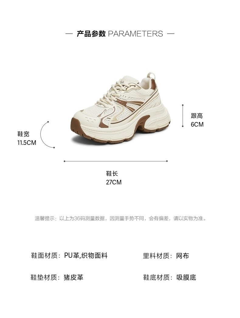 | 风格分类:老爹鞋 | 上市时间:2025年春季 | 生产/经销/进口厂家:丽荣鞋业(深圳)有限公司 | 鞋类流行款式:老爹鞋 | 鞋头款式:圆头 |