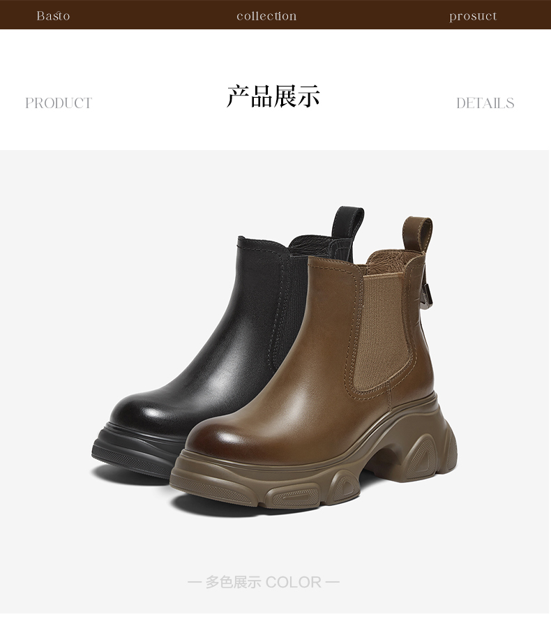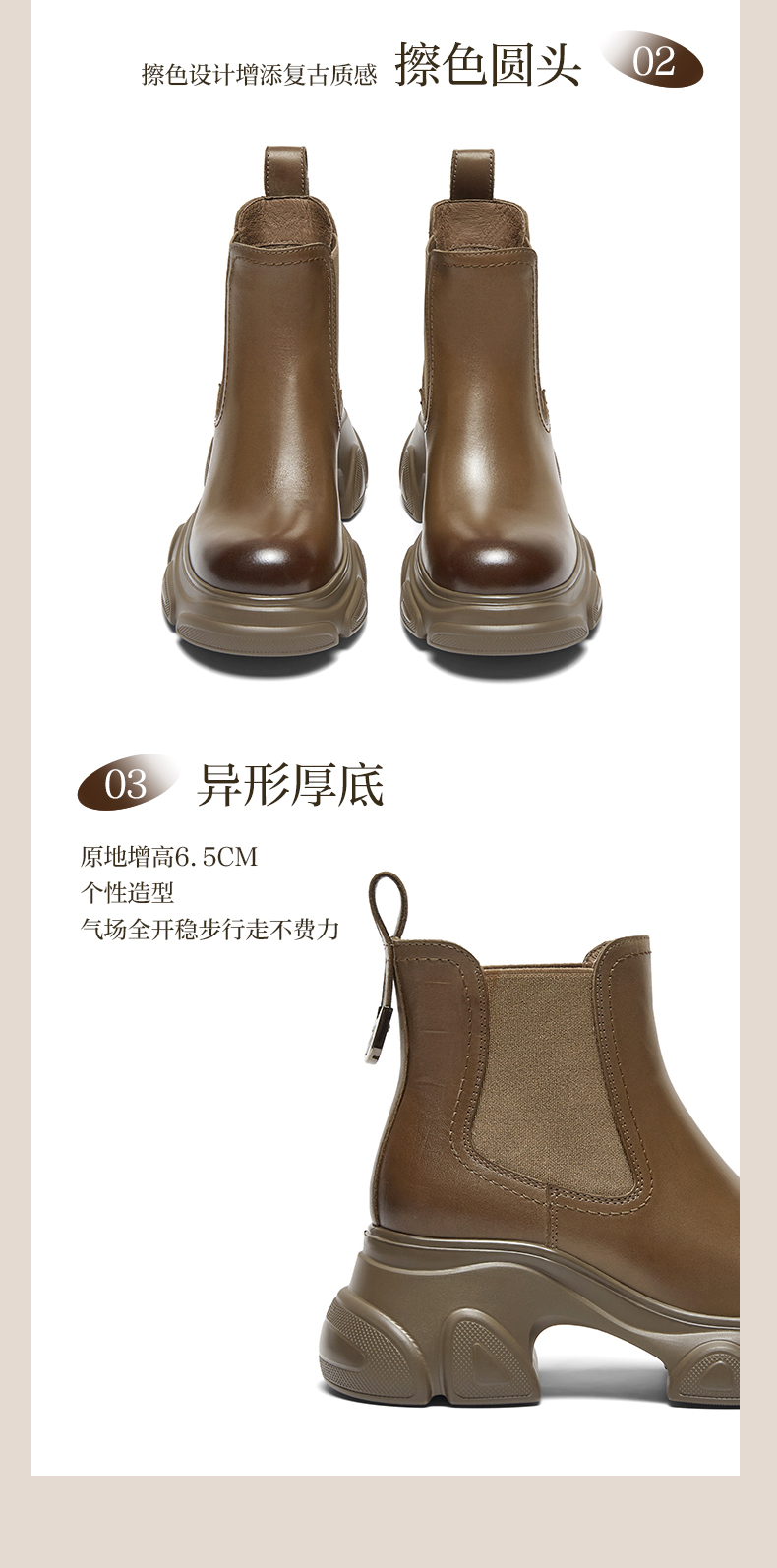 | 鞋类流行款式:短靴 | 鞋头款式:圆头 | 执行标准:皮鞋 QB/T1002-2015 | 跟高范围:高跟鞋(6-8CM) | 鞋面图案:纯色 |