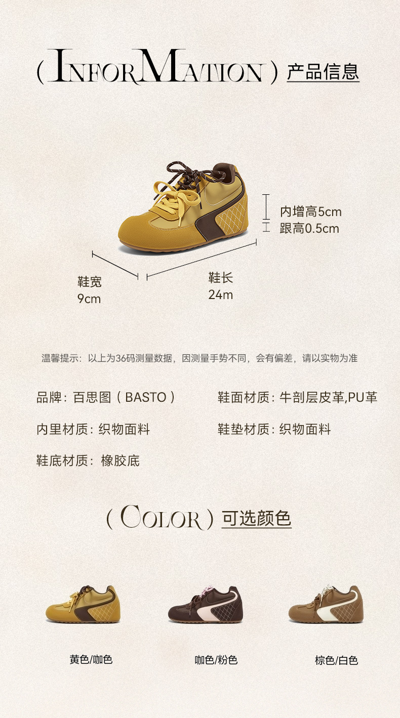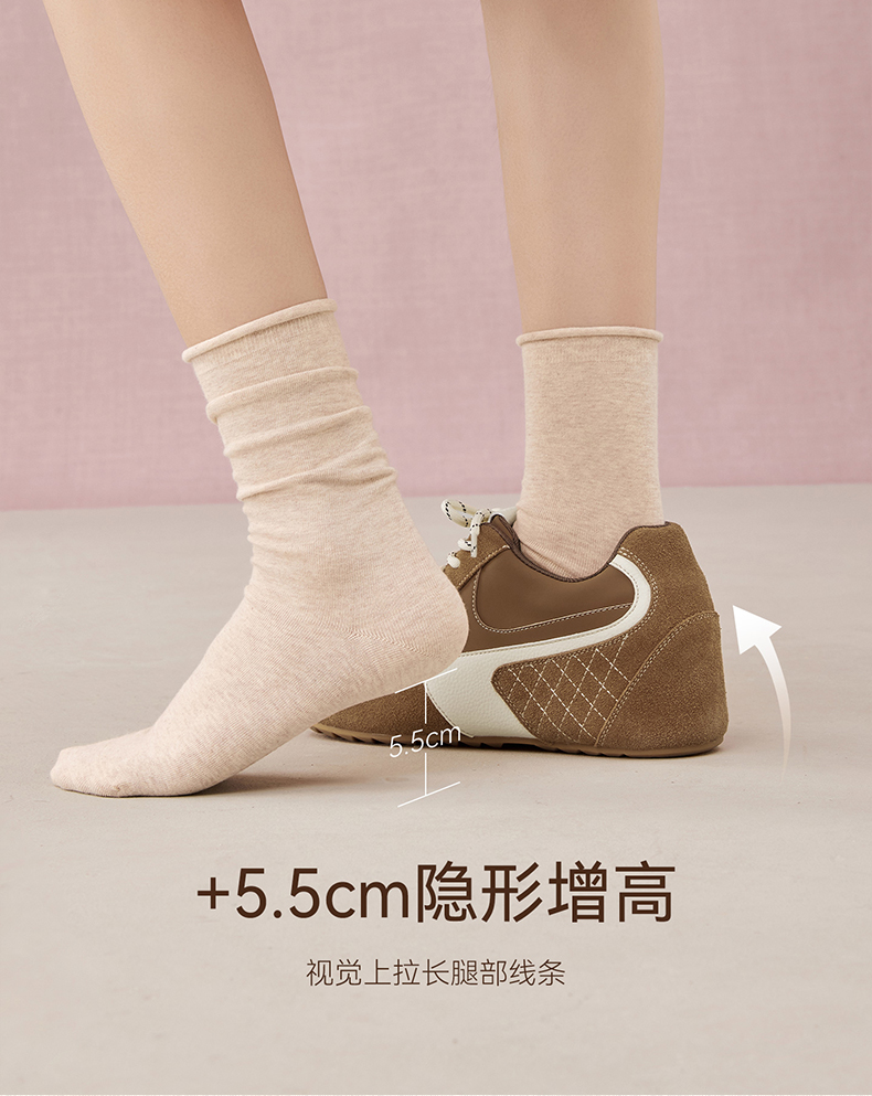 | 鞋帮:低帮 | 鞋底材质:橡胶底 | 内增高:5CM | 鞋面材质:PU革牛剖层皮革 | 闭合方式:系带 |