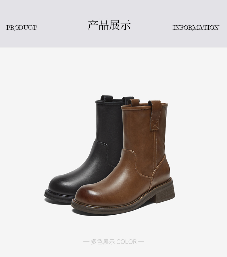 | 款式季节:冬季 | 前掌高度:1.5CM | 皮质特征:擦色皮 | 防水台高度:无 |