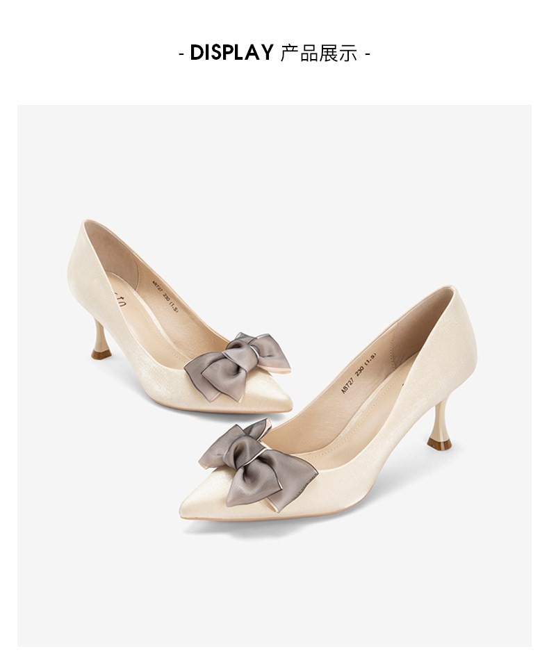 | 鞋头款式:尖头 | 跟高范围:高跟鞋(6-8CM) | 鞋面图案:纯色 | 鞋跟形状:细跟 | 参考鞋长(女):24CM |