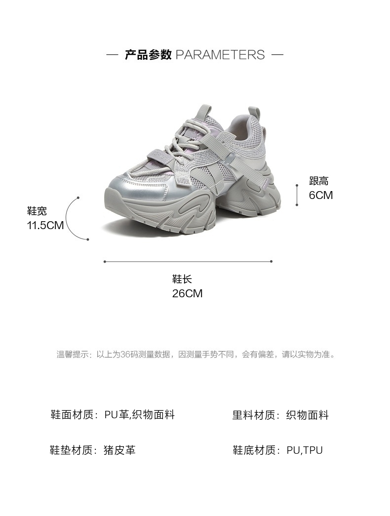 | 风格分类:老爹鞋 | 上市时间:2025年春季 | 生产/经销/进口厂家:丽荣鞋业(深圳)有限公司 | 鞋类流行款式:老爹鞋 | 鞋头款式:圆头 |