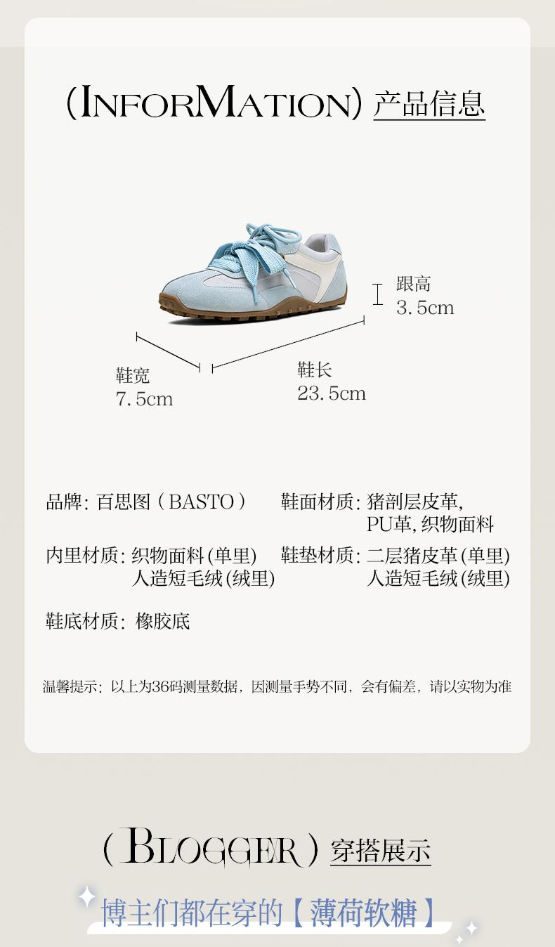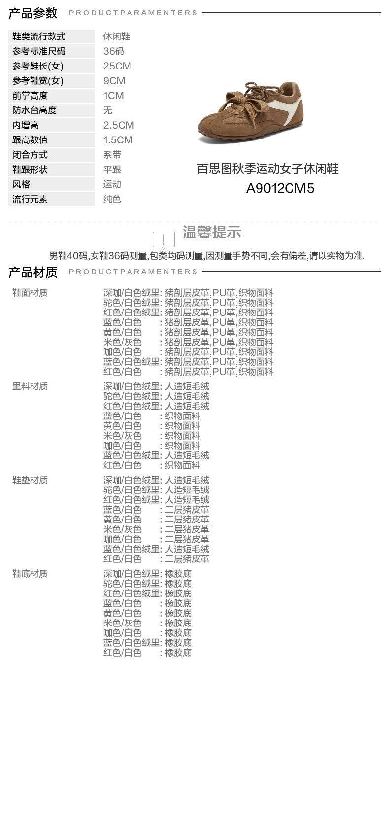 | 鞋帮:低帮 | 鞋底材质:橡胶底 | 内增高:2.5CM | 鞋面材质:织物面料PU革猪剖层皮革 | 闭合方式:系带 |