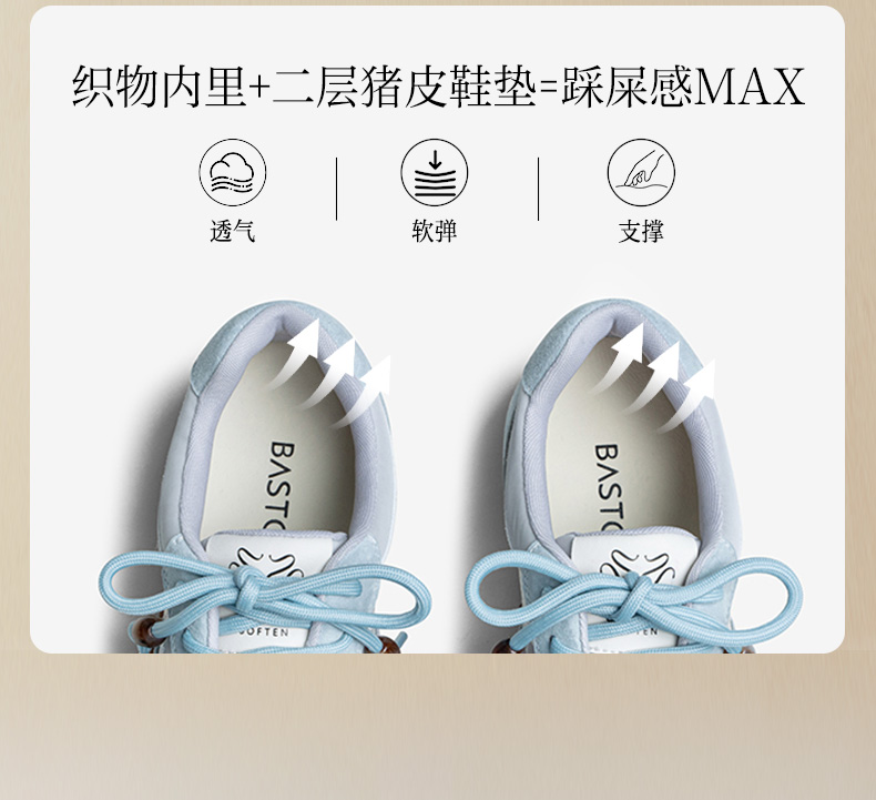 BASTO(百思图),品牌拥有17年历史,秉承优雅、甜美、清新的设计理念,主张“好嫁风”的产品风格,将甜美俏丽的少女情怀融合优雅气质的时尚品味,塑造出唯美优雅、受欢迎的女鞋款式。主打以女性温柔与亲和力为特色的流行时尚产品,糅合雅致又富有亲和力的裸粉色调,淑媛端庄、清新甜美。目前品牌已开设线下门店达1400多家。