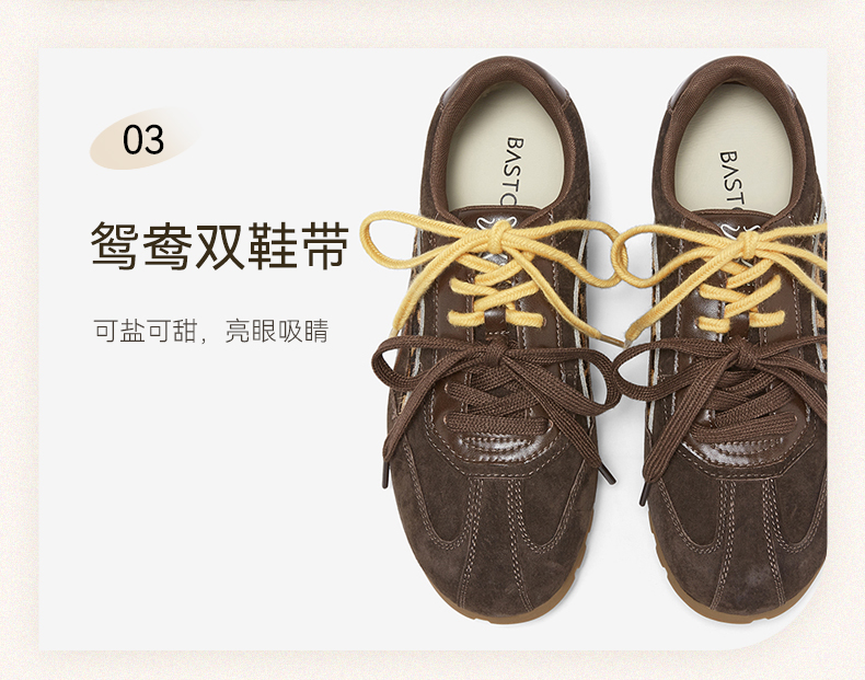 BASTO(百思图),品牌拥有17年历史,秉承优雅、甜美、清新的设计理念,主张“好嫁风”的产品风格,将甜美俏丽的少女情怀融合优雅气质的时尚品味,塑造出唯美优雅、受欢迎的女鞋款式。主打以女性温柔与亲和力为特色的流行时尚产品,糅合雅致又富有亲和力的裸粉色调,淑媛端庄、清新甜美。目前品牌已开设线下门店达1400多家。