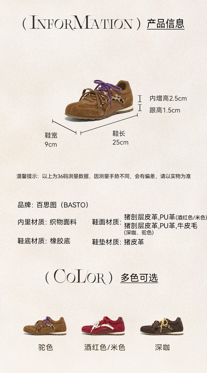 | 鞋帮:低帮 | 鞋底材质:橡胶底 | 内增高:2.5CM | 鞋面材质:PU革猪剖层皮革 | 闭合方式:系带 |