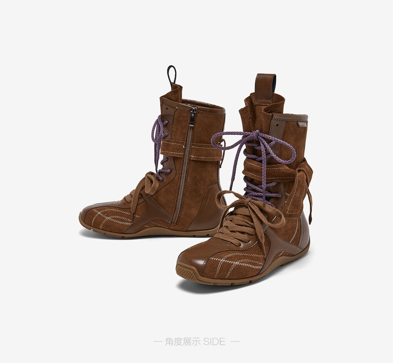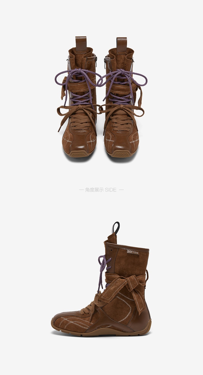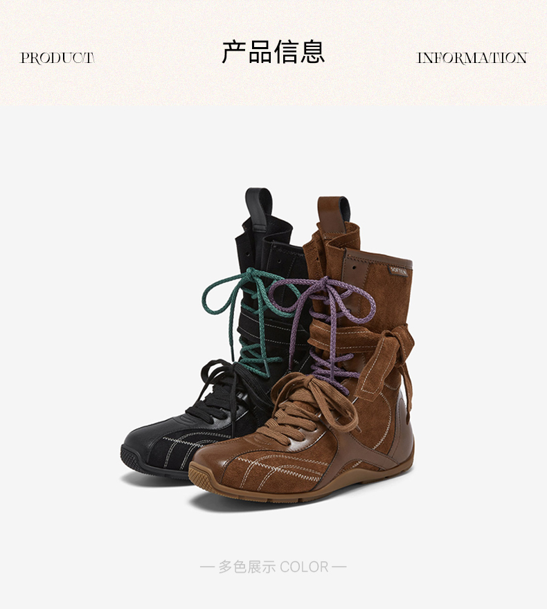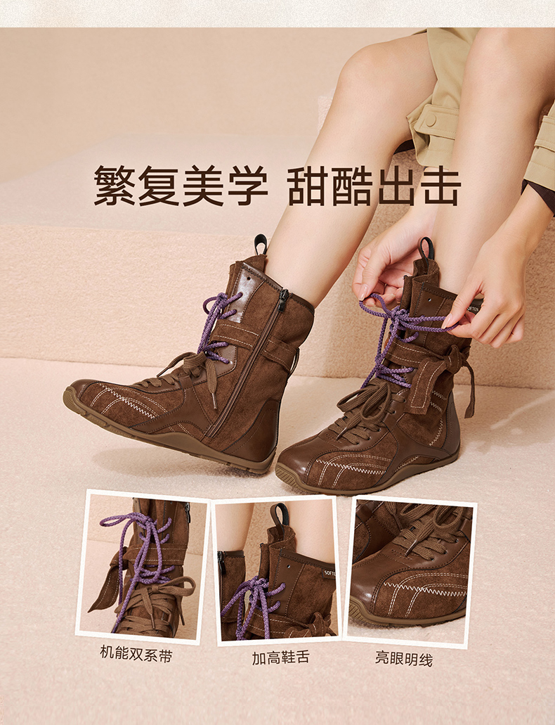 | 鞋底材质:橡胶底 | 靴筒内里材质:织物面料 | 内增高:无 | 鞋面材质:织物面料PU革 | 闭合方式:系带 |
