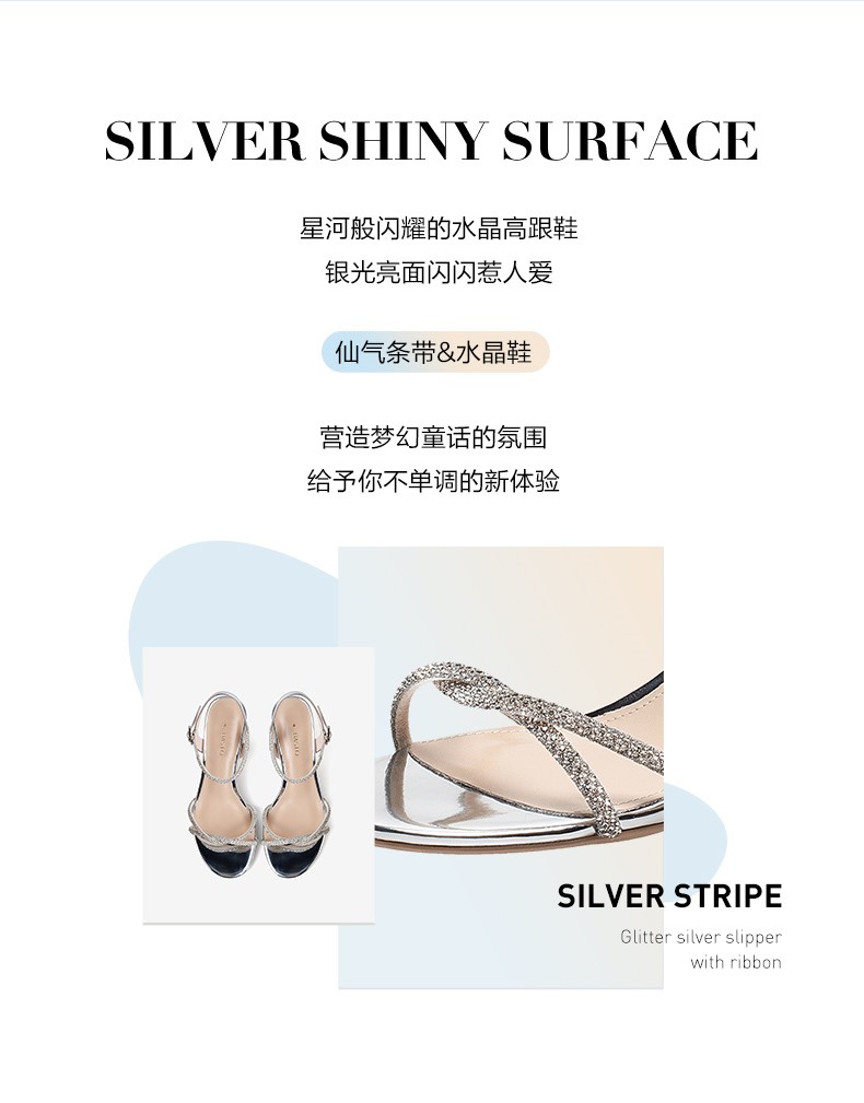 | 流行元素:闪钻 | 参考鞋长(女):23.5CM | 参考鞋宽(女):8CM | 闭合方式:露趾 | 风格:休闲 |