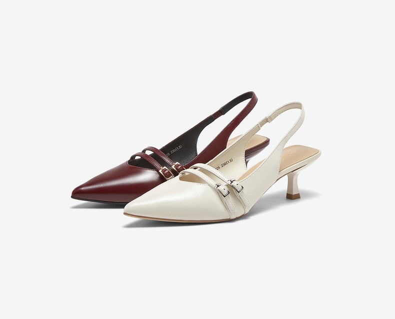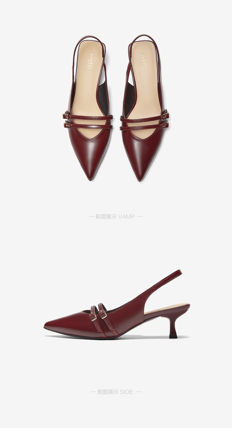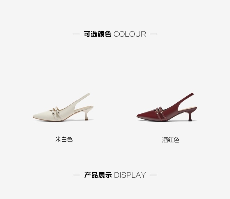 | 鞋类流行款式:后空凉鞋 | 鞋头款式:尖头 | 执行标准:皮凉鞋GB/T22756-2017 | 跟高范围:中跟鞋(3-5CM) | 鞋面图案:纯色 |