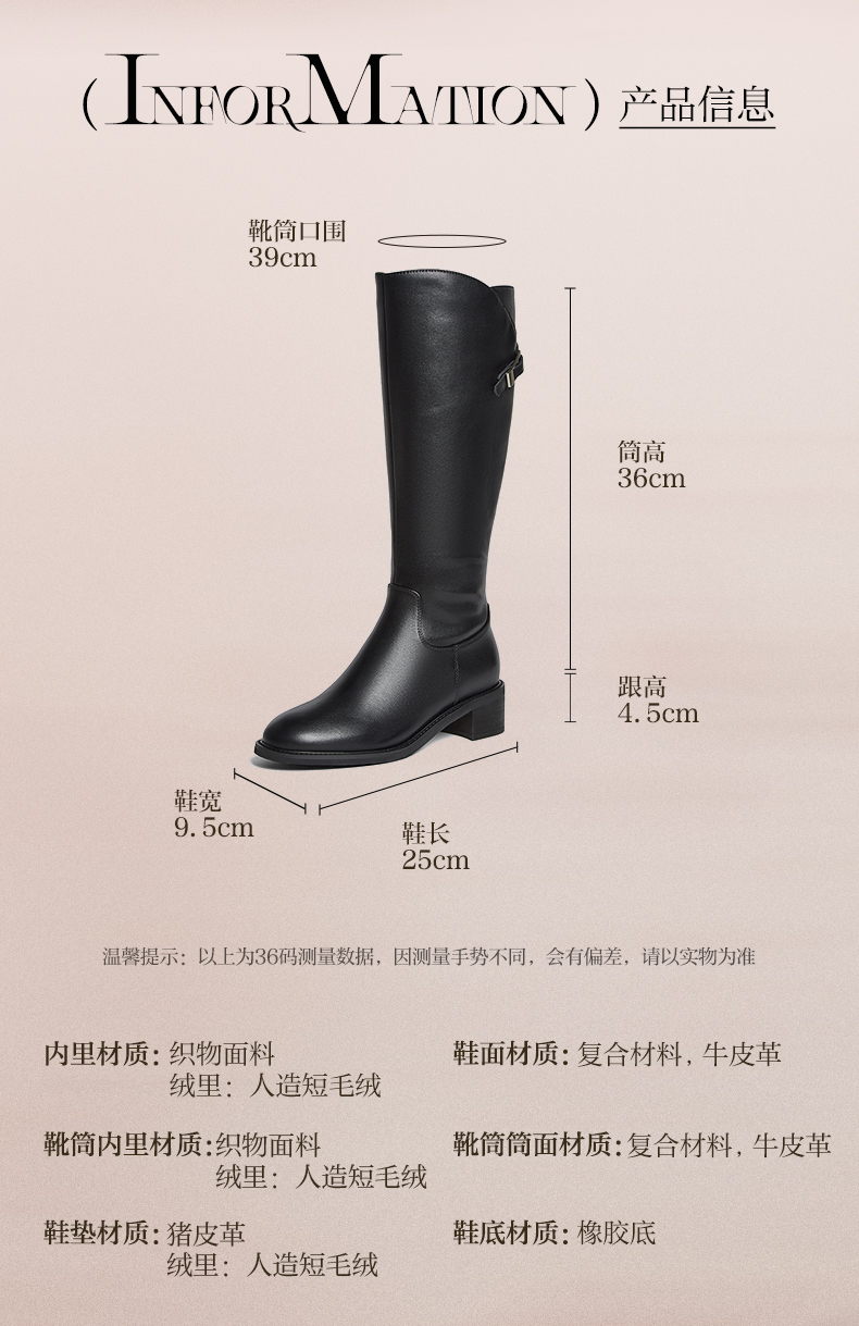| 配跟:无 | 靴筒口围:39CM | 上市时间:2025年冬季 | 鞋类流行款式:骑士靴 | 鞋头款式:圆头 |