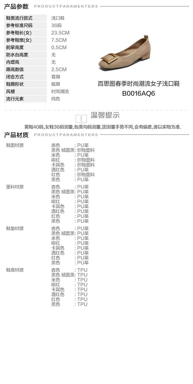 | 上市时间:2026年春季 | 鞋类流行款式:浅口鞋 | 鞋头款式:方头 | 鞋面图案:纯色 | 鞋跟形状:粗跟 |