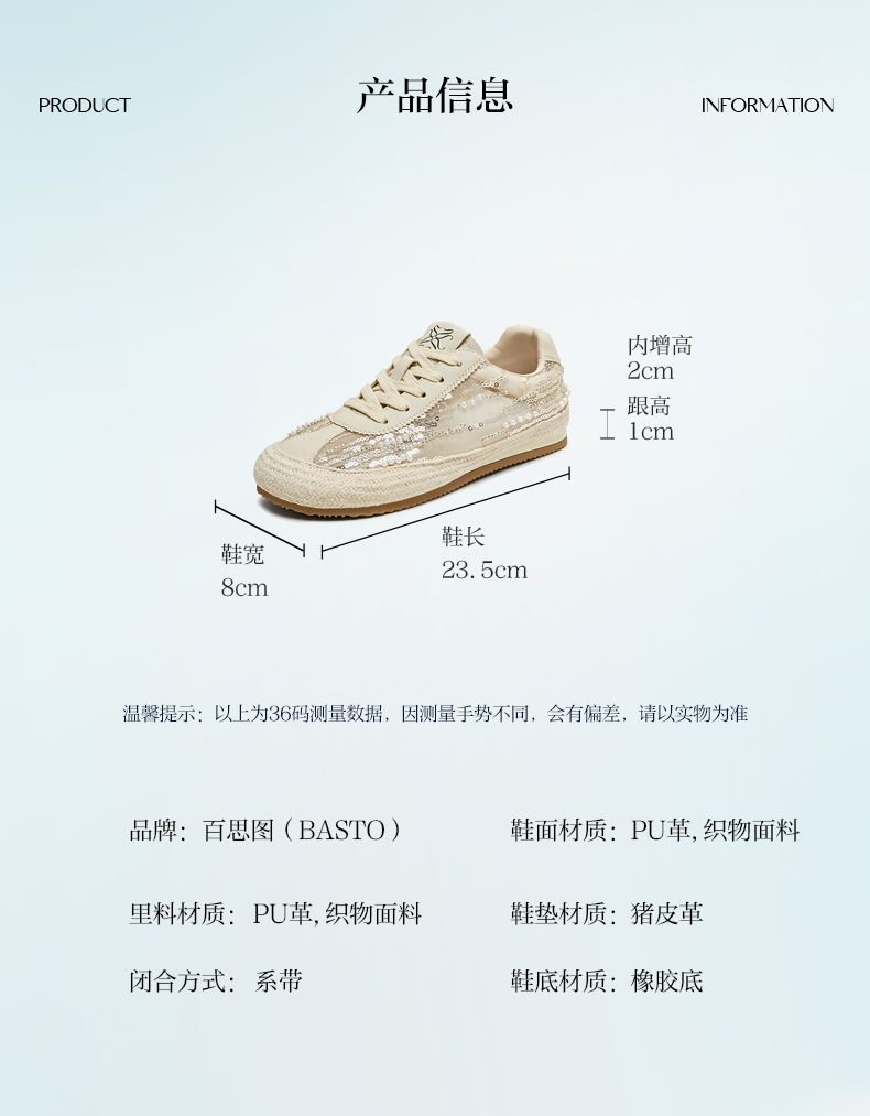 | 鞋帮:低帮 | 功能科技:耐磨 | 鞋底材质:橡胶底 | 内增高:2CM | 鞋面材质:织物面料PU革 |