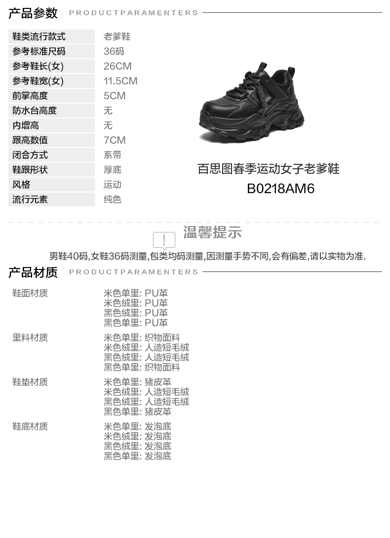 | 配跟:无 | 上市时间:2026年春季 | 鞋类流行款式:老爹鞋 | 鞋头款式:圆头 | 鞋面图案:纯色 |
