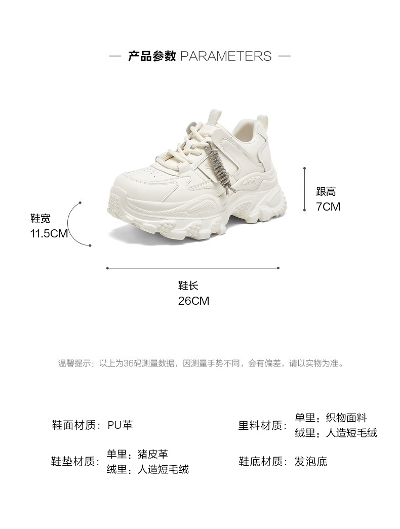 | 鞋跟形状:厚底 | 参考鞋长(女):26CM | 流行元素:纯色 | 参考鞋宽(女):11.5CM | 风格:运动 |