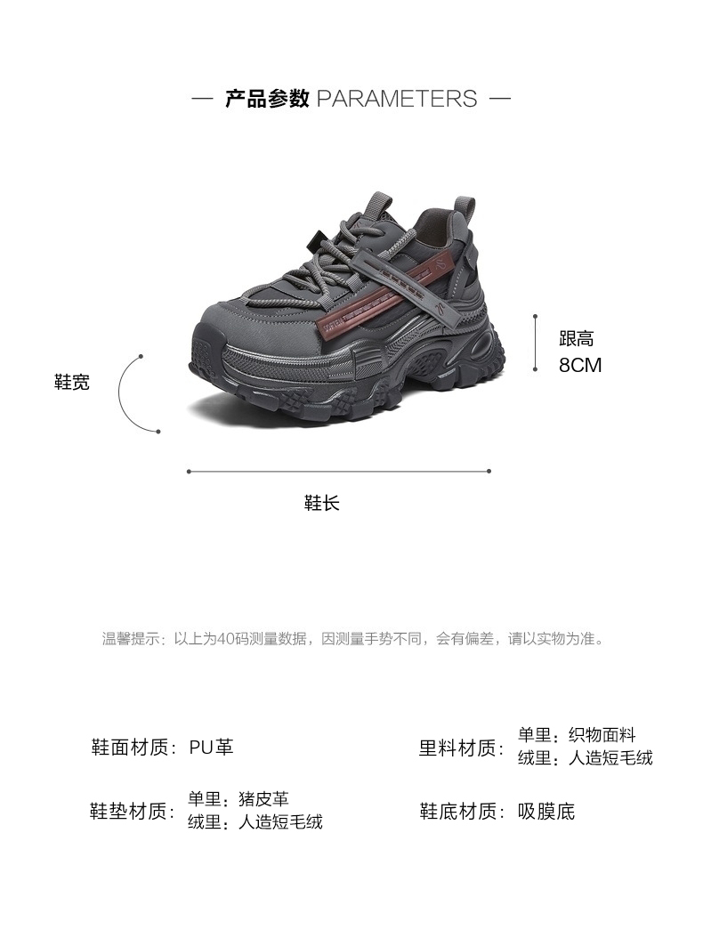 | 配跟:无 | 上市时间:2026年春季 | 鞋类流行款式:老爹鞋 | 鞋头款式:圆头 | 鞋面图案:纯色 |