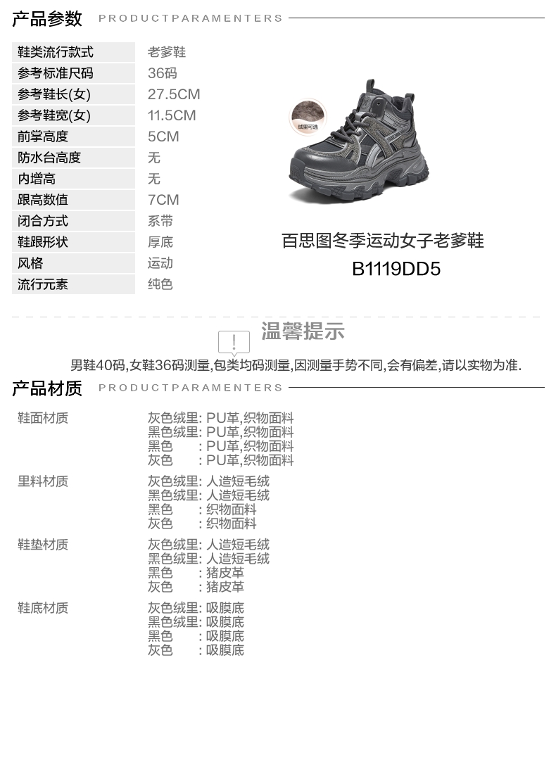 | 帮面材质:PU | 配跟:无 | 上市时间:2025年冬季 | 鞋类流行款式:老爹鞋 | 鞋头款式:圆头 |