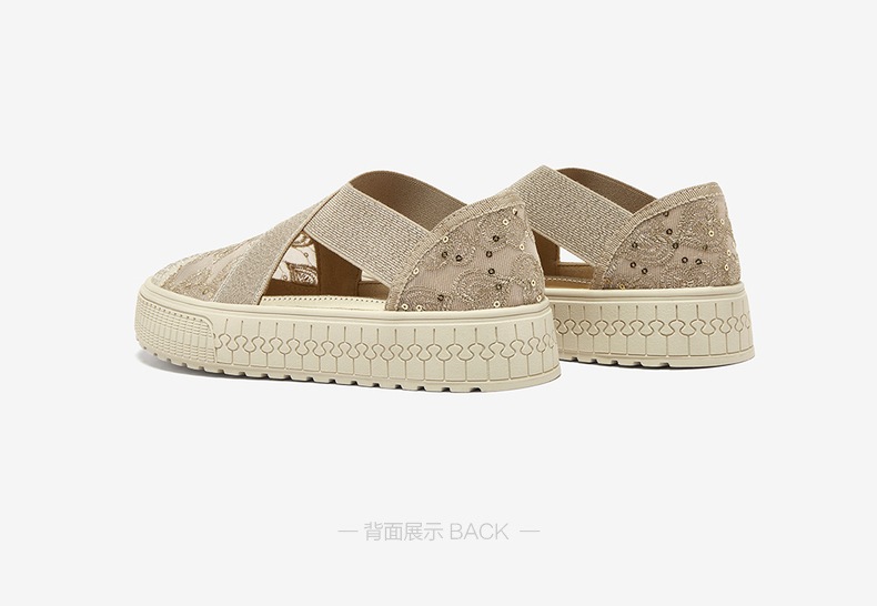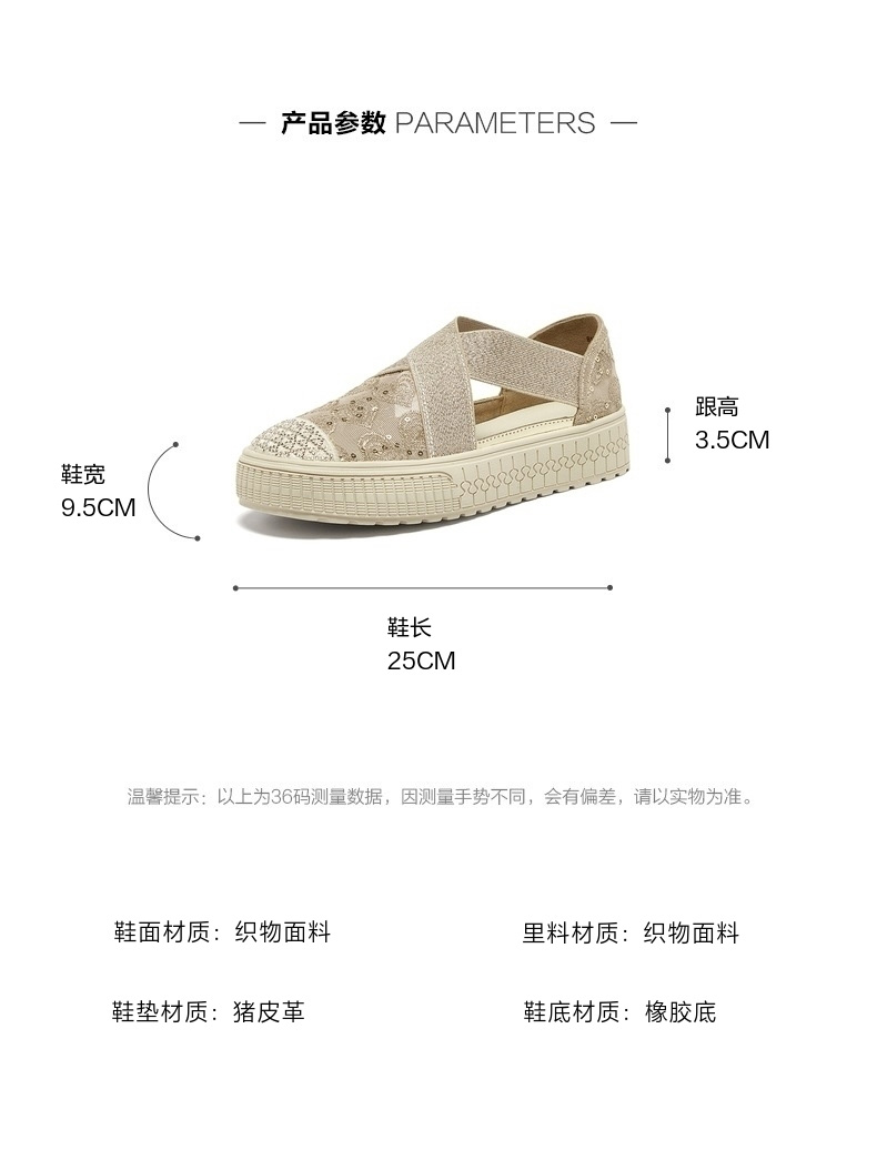 | 鞋面内里材质:织物 | 色系:金色 | 跟高数值:3.5CM | 性别:女子 | 里料材质:织物面料 |