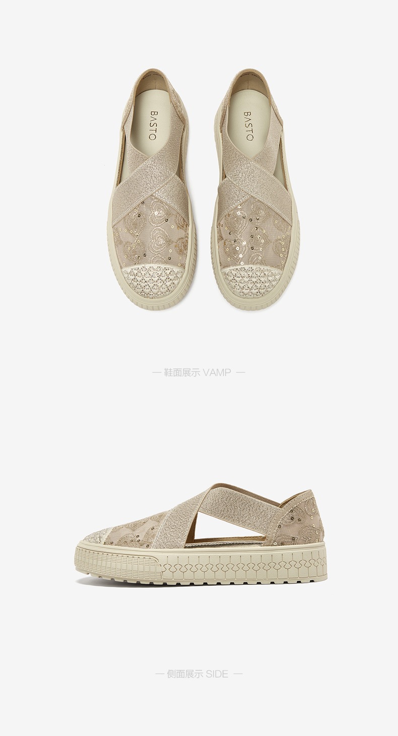 BASTO(百思图),品牌拥有17年历史,秉承优雅、甜美、清新的设计理念,主张“好嫁风”的产品风格,将甜美俏丽的少女情怀融合优雅气质的时尚品味,塑造出唯美优雅、受欢迎的女鞋款式。主打以女性温柔与亲和力为特色的流行时尚产品,糅合雅致又富有亲和力的裸粉色调,淑媛端庄、清新甜美。目前品牌已开设线下门店达1400多家。